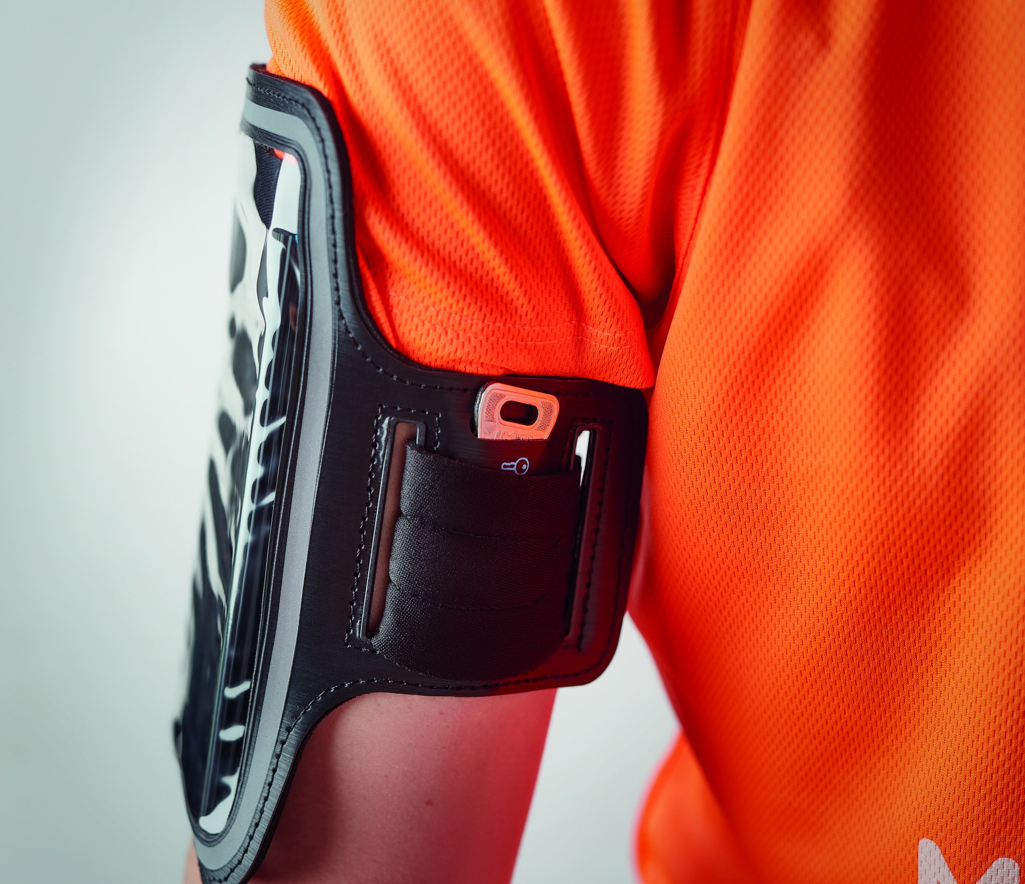 Adjustable armband in neoprene with transparent front with reflective detail. Fit up to 6.5 inch screen phones.