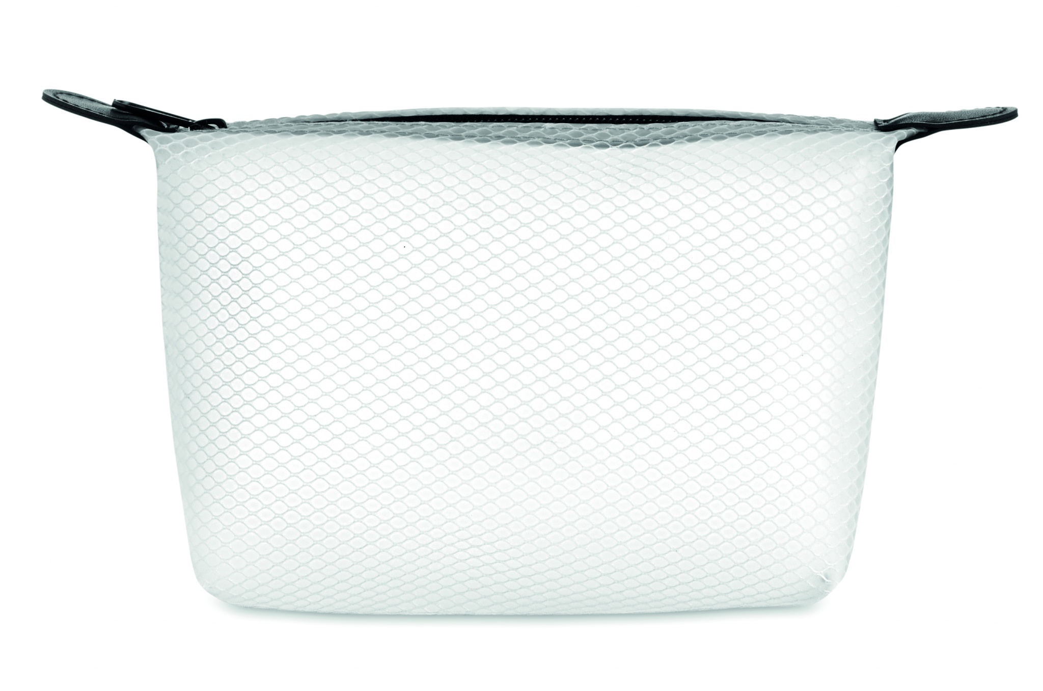 Cosmetic bag in transparent EVA mesh with black zipper.