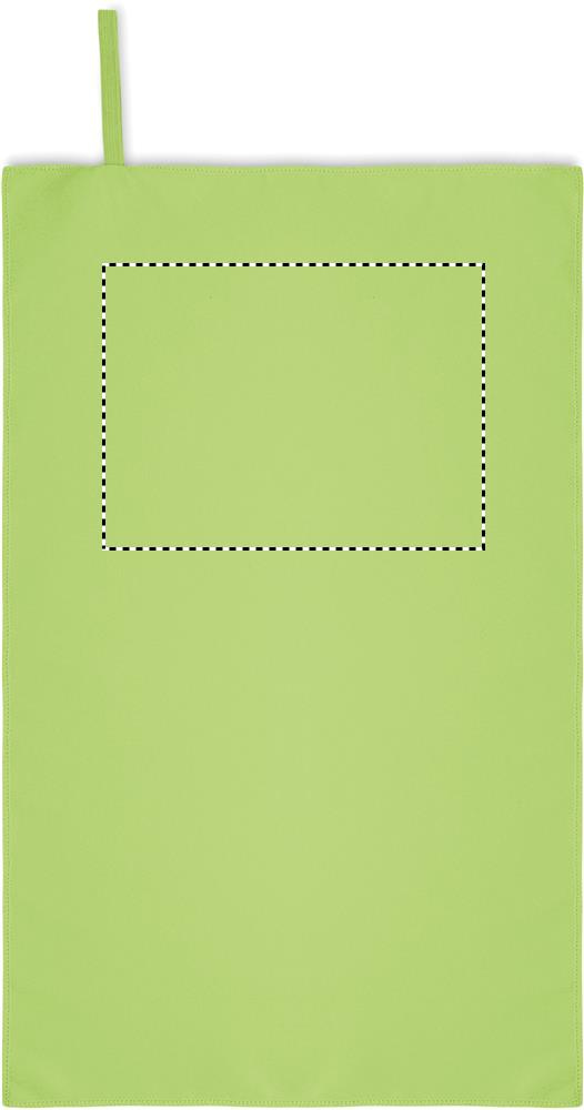 Microfibre towel made of 90% polyester and 10% polyamide with elastic handle. Lightweight and quick drying. Size 30 cm x 50 cm.