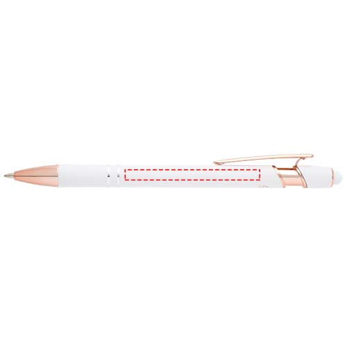 The Nanna ballpoint pen with rose gold finish has a barrel made of recycled aluminium with a touch stylus made of silicone. Recycled aluminium reduces the amount of waste in landfills and helps to conserve natural resources aiming to reduce greenhouse emissions. Ink colour: Black. Writing length: 800 metres. Nib size: 1.0 mm.