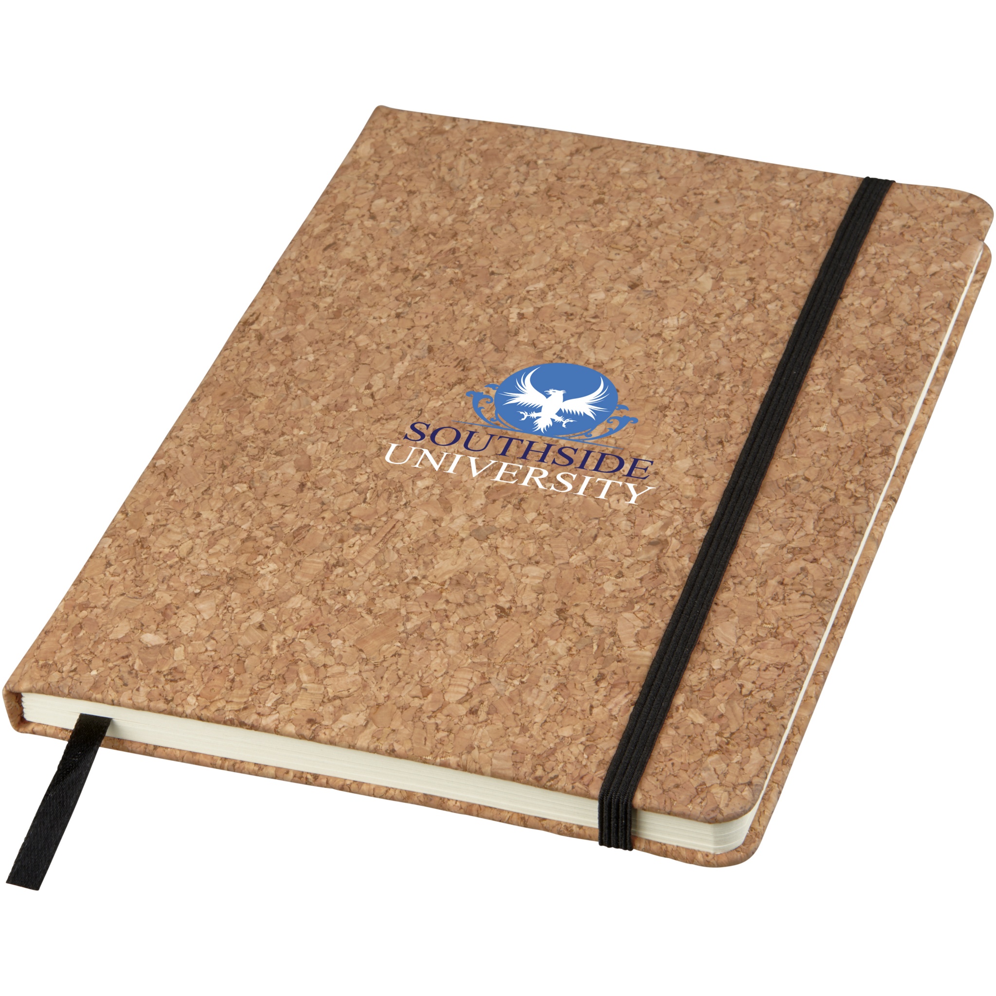 An A5 sized notebook with cork cover, black elastic and ribbon. Includes 80 sheets of 70g/m2 lined paper.