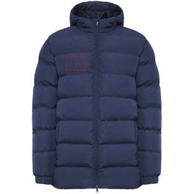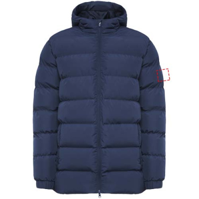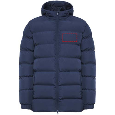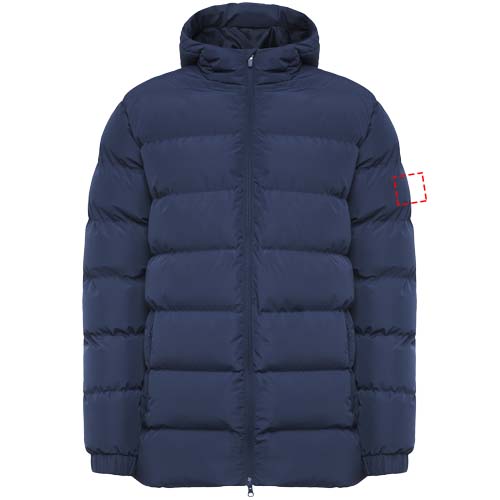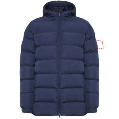Padded sports parka. Hood with peak. Front zip with matching puller and chin protector. Elastic cuffs. Two side pockets with zip. Interior left chest pocket. Inner access for reprocessing. Removable label. Waterproof. Wind-proof.