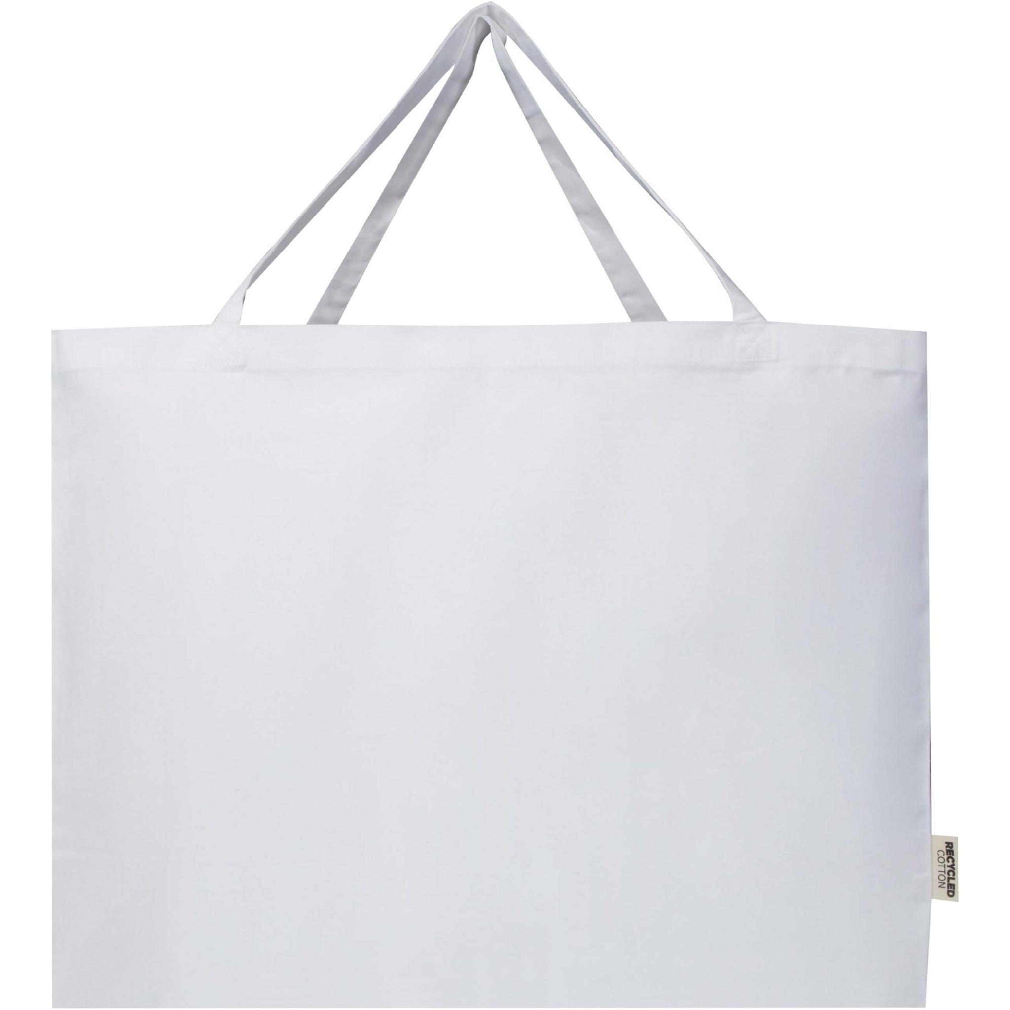 The oversized Odessa tote bag made from 100% GRS recycled cotton is designed for comfortable carrying with its 30 cm long shoulder handles and extra large main gusset compartment. Whether it is to carry around heavy books or groceries, this bag is designed to cover all needs. Print methods available for this tote bag are also certified, making sure that the entire supply chain is transparent and certified. The 220 g/m² cotton ensures durability and reliability, giving the bag a resistance of up to 10 kg weight. Made in India.