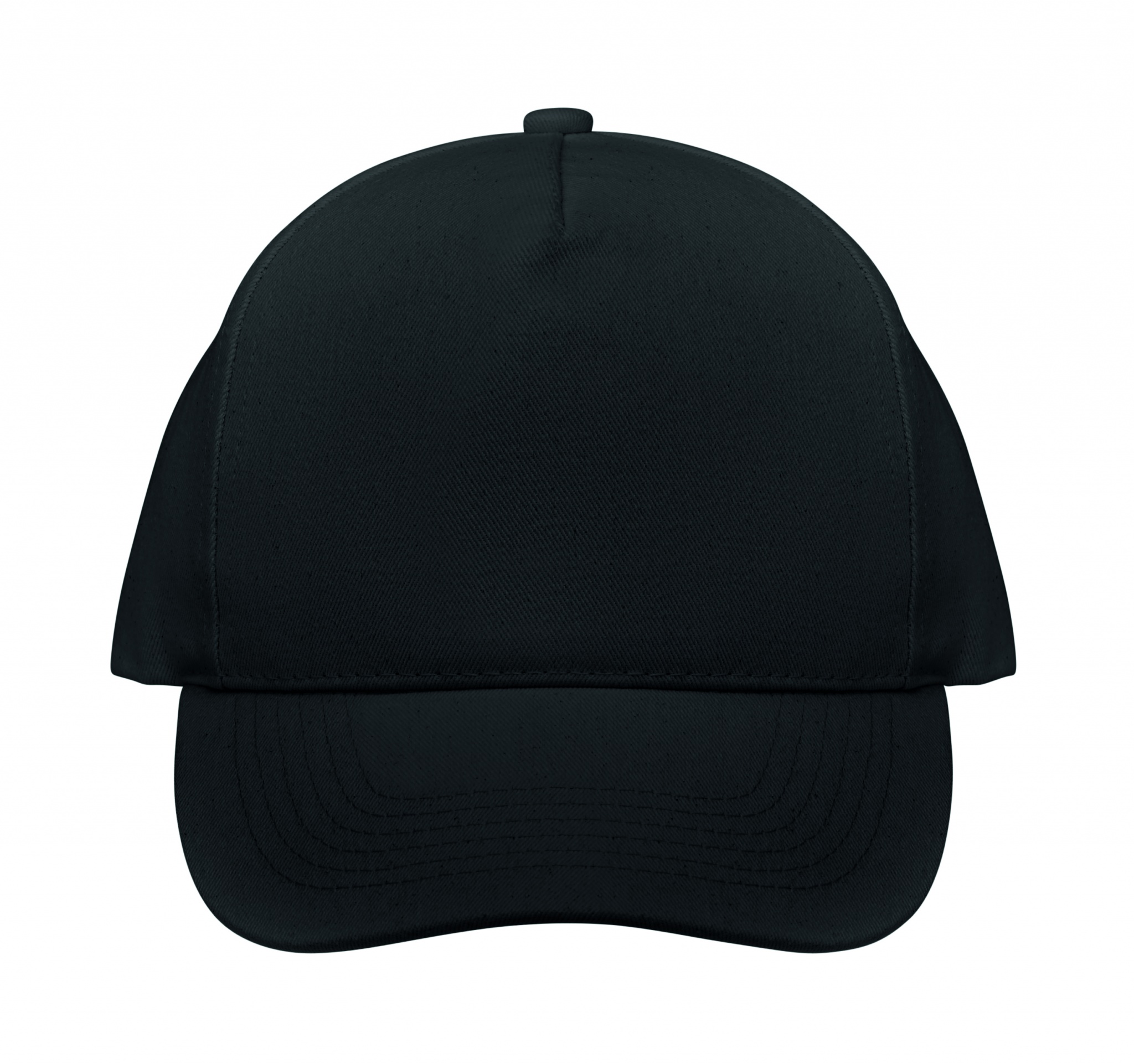 5 panel baseball cap in 250 gr/m² organic brushed cotton with metal adjustable strap back buckle closure.