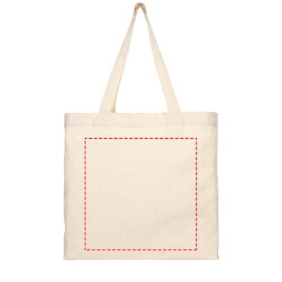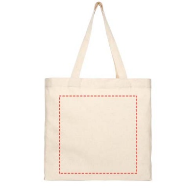 Tote made of 210 g/m² recycled cotton polyester blend. Recycled cotton is manufactured from pre-consumer waste generated by textile factories during the cutting process. Tote with gusset and large main compartment. Features two handles with a dropdown height of 31 cm. Resistance up to 10 kg weight. There may be minor variations in the colour of the actual product due to the nature of the production process.