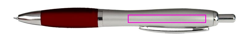 Ballpoint pen with blue writing large capacity refill and color contrast soft touch grip zone. We print your logo on the right side of the clip.