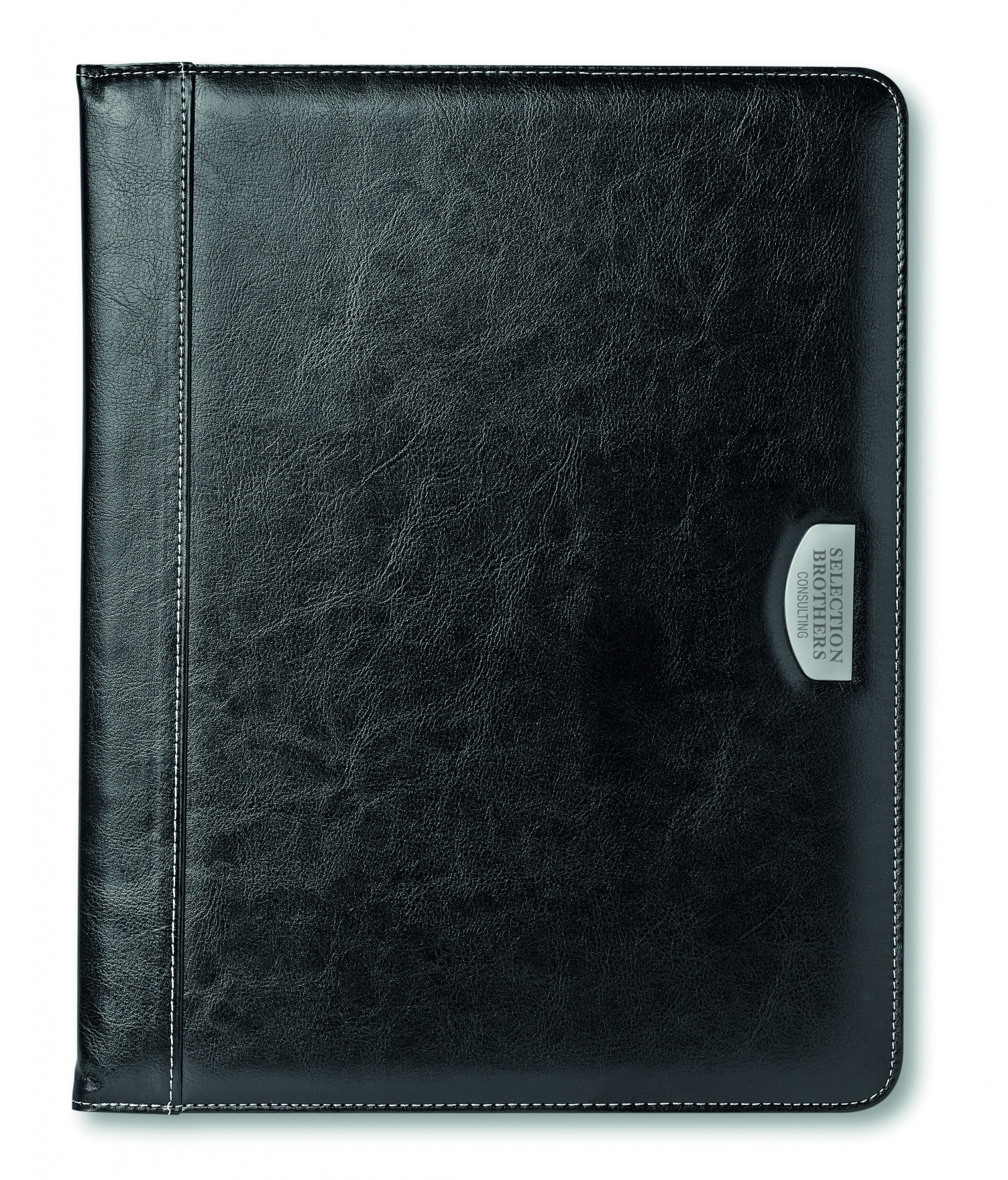 A4 PU portfolio with metal logo plate. Include 20 page notebook.