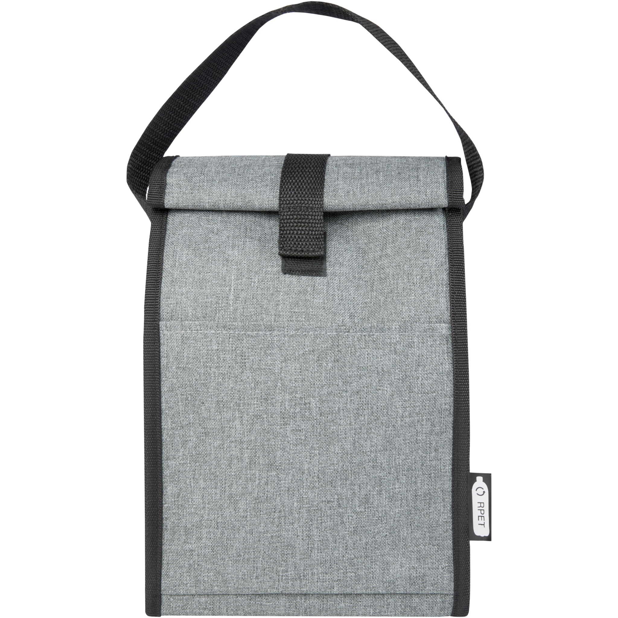 The Reclaim 4-can cooler bag features an exterior made from 100% GRS certified recycled PET plastic, making it a sustainable choice. Features a fold-over closure and a grab handle for easy carrying.