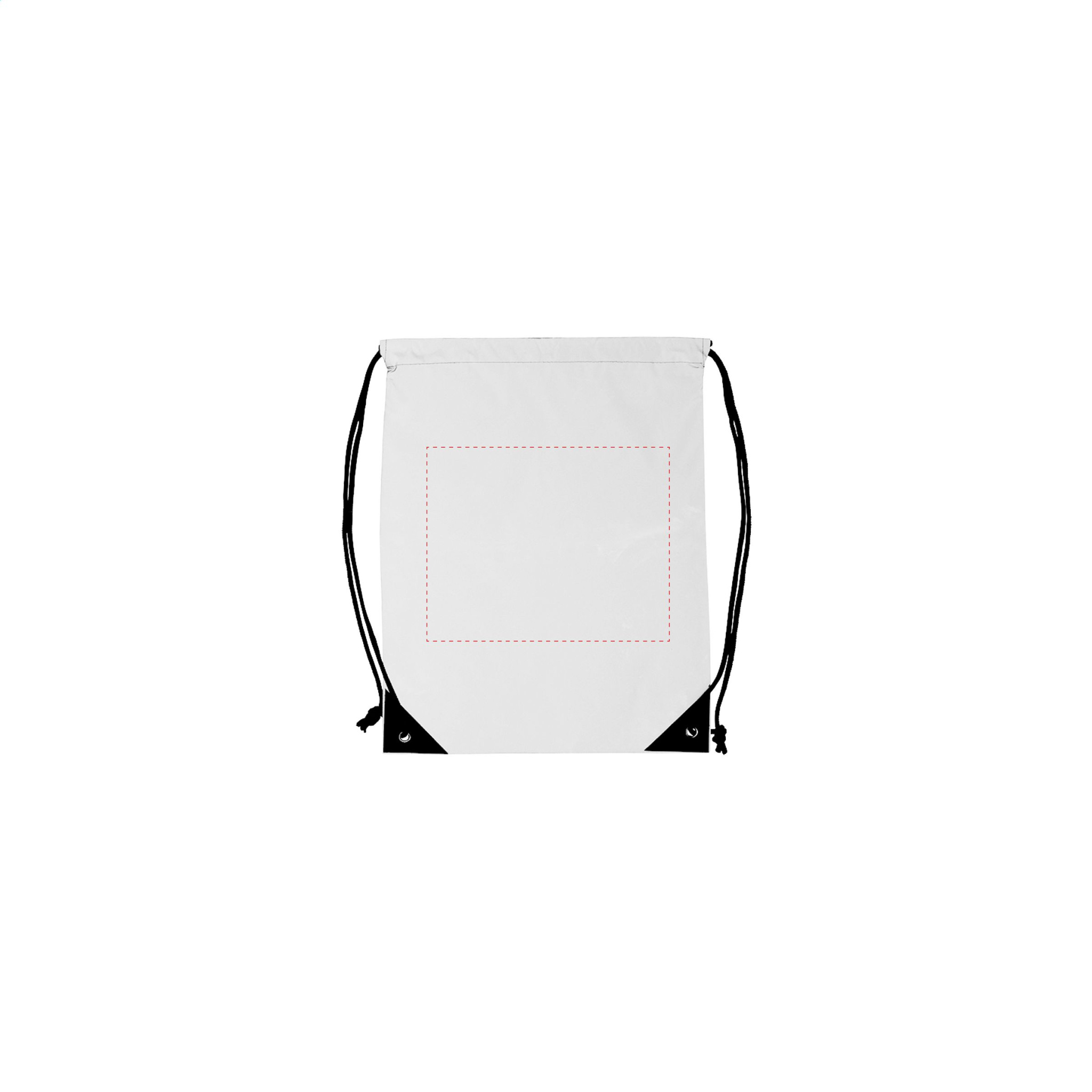Backpack made from grey reflective, fluorescent and water-resistant nylon. Specially coated. With drawstrings and reinforced corners. This makes you more visible when walking or biking in the dark. A comforting feeling. Capacity approx. 8 litres.