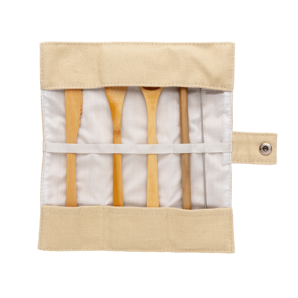 Logo trade promotional merchandise picture of: Reusable bamboo travel cutlery set