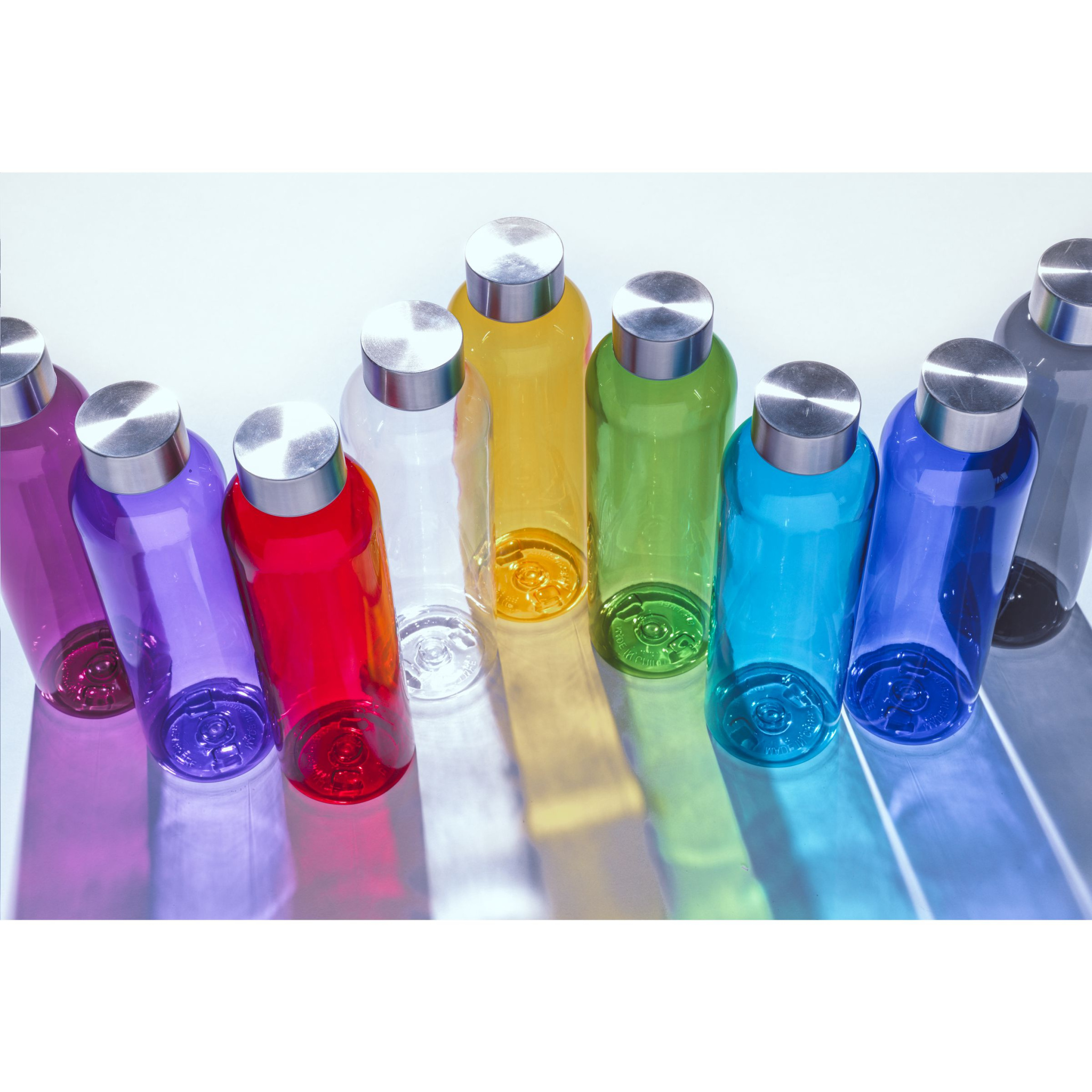 Transparent, BPA-free water bottle made from PCTG SK plastic. With stainless steel screw top. The sleek design catches the eye immediately and is extremely comfortable. Leakproof. Capacity 650 ml.