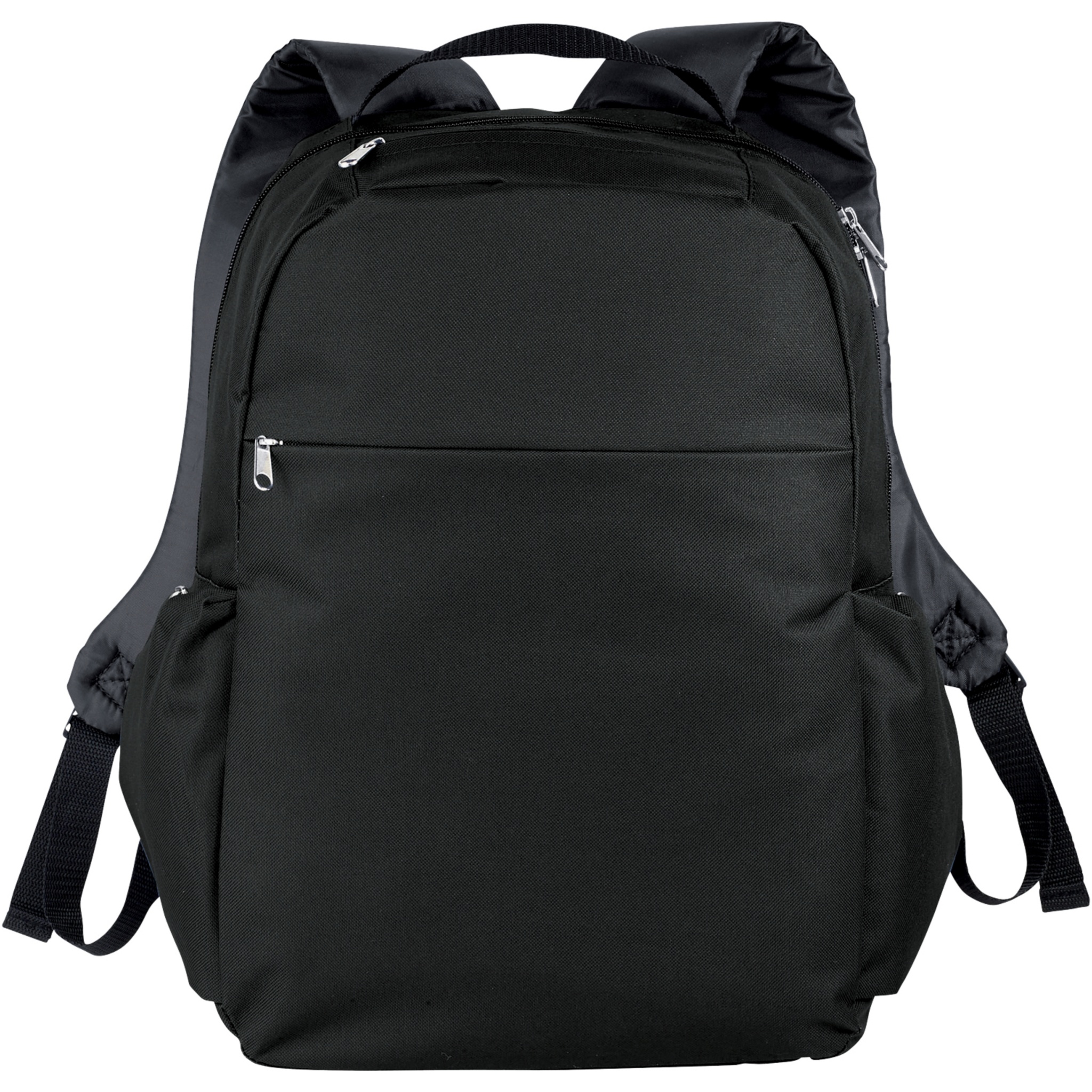 Large double zipped main compartment with padded laptop sleeve that can hold up most 15" laptop. Four additional zipped organizational pockets for all your technology essentials. Two side zipped compartments ideal for cables, chargers, etc. Large zipped front pocket. Top zipped pocket for quick access. Padded back panel. Double padded adjustable shoulder straps. Top carry handle. Accessories not included.