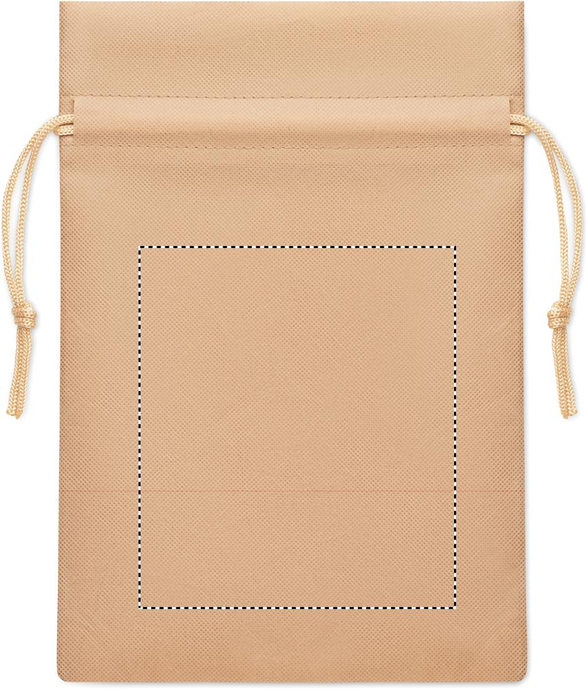Small gift draw cord bag in RPET non-woven 80 gr/m². Size approx. 20x30 cm.