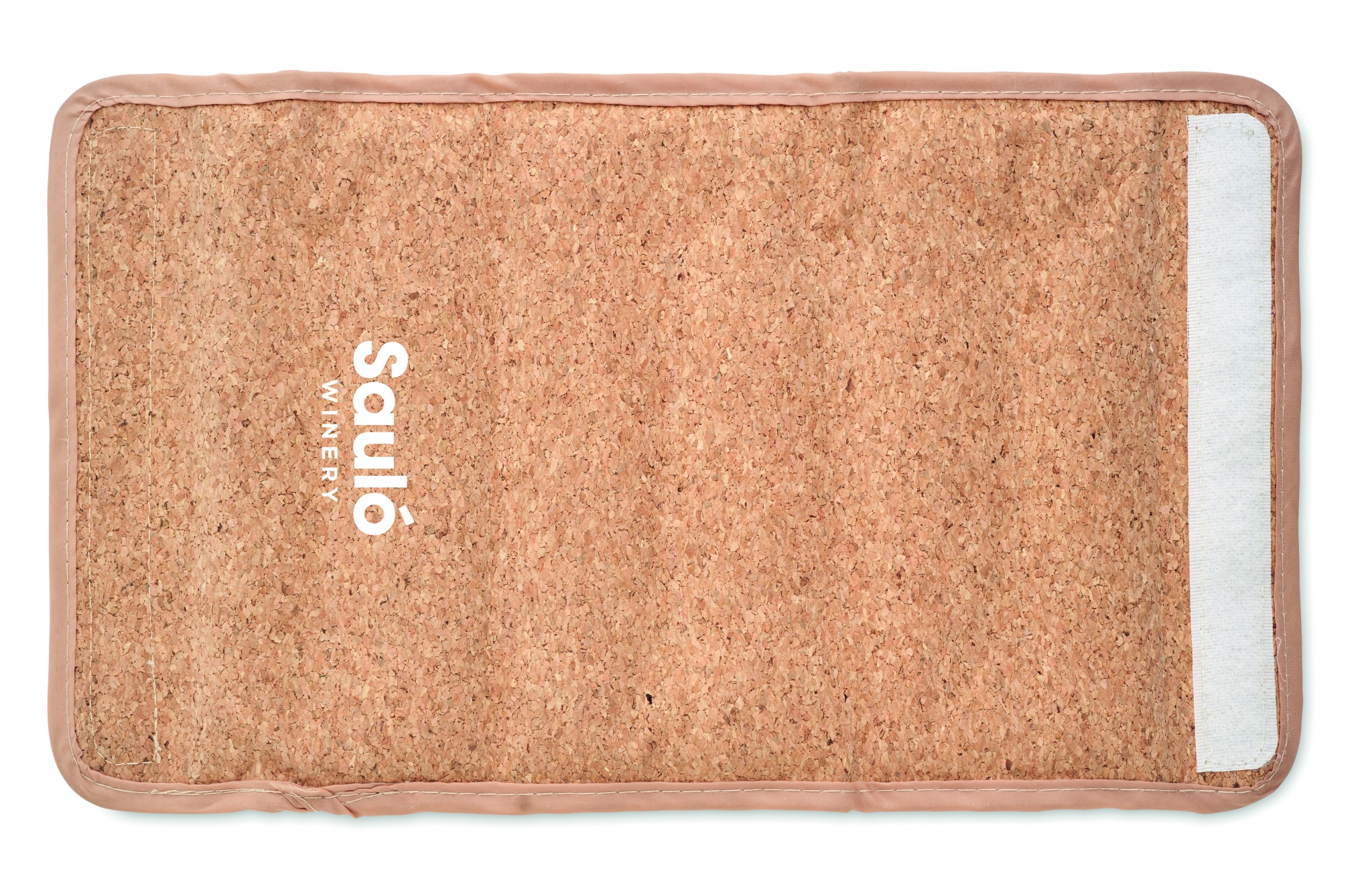 Soft wine cooler in cork wrap with PVC sheeting with gel inside. It has an adjustable hook and loop fastening. Cork is 100% natural material. Due to its structural nature and surface porosity the final print result per item may have deviations.