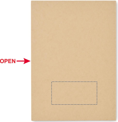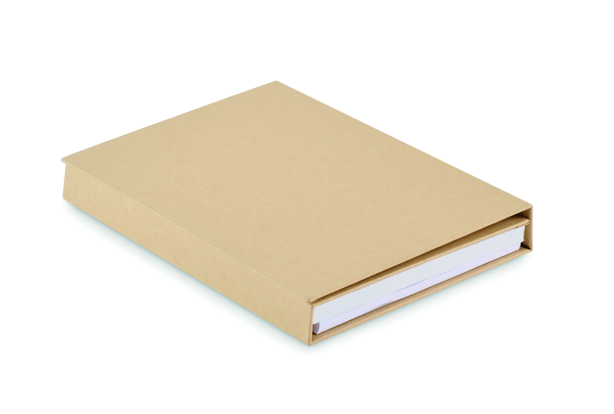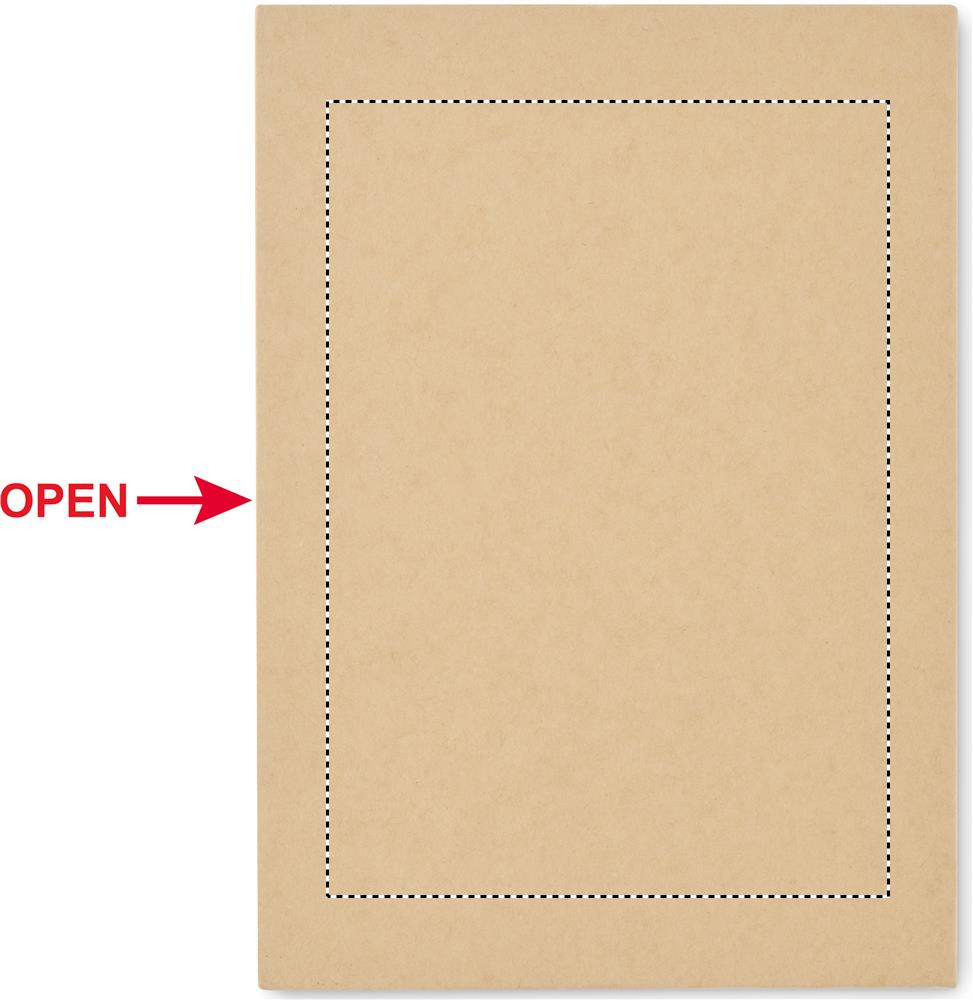 Stationary notepad set with recycled carton cover. 70 lined recycled sheets. Sticky memo pads and page markers. Push ball pen with paper barrel and ABS parts, ABS sharpener, 2 wooden pencils, 15 cm wooden ruler, and PP protractor.