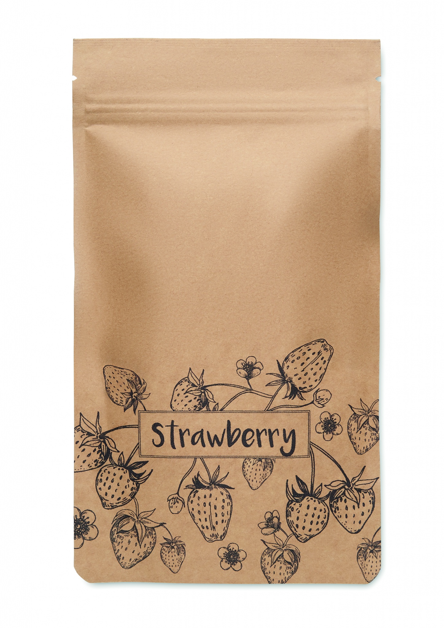 Strawberry growing kit including garden compost in a paper packaging. Made in EU.