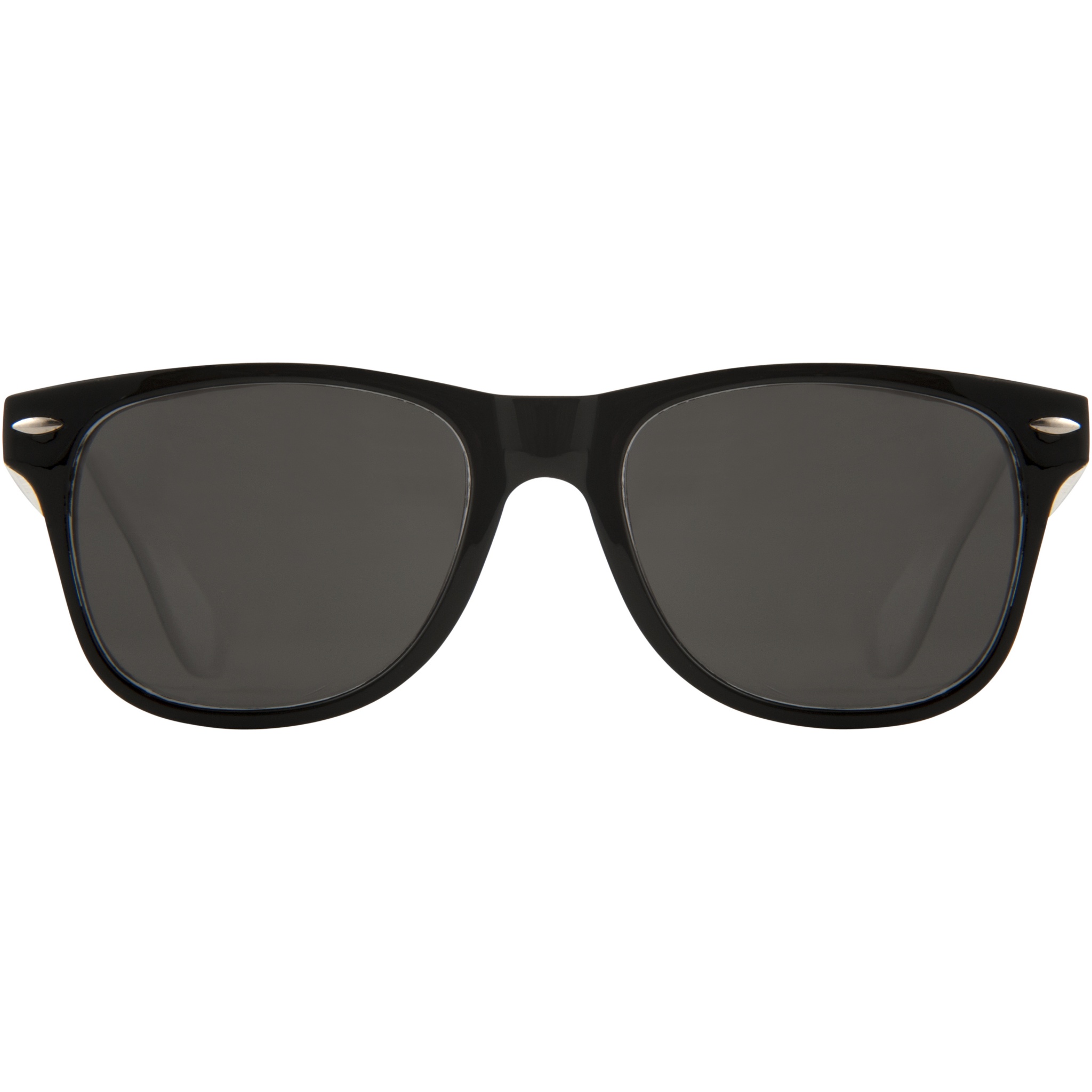 Retro design duo-tone sunglasses with inside pop-up colour finish and category 3 black lenses. Compliant with EN ISO 12312-1 and UV400.