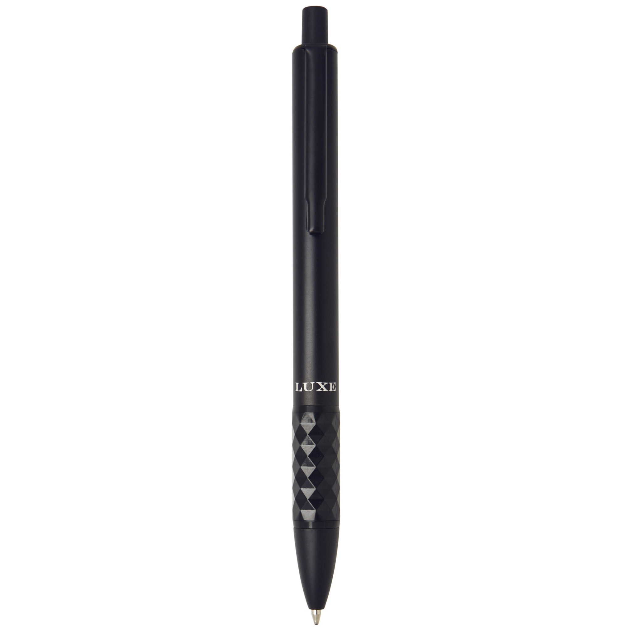 Exclusive A5 sized design notebook with Thermo PU cover, black ribbon page marker, magnetic closure and 80 sheets of 80gsm cream lined paper. Paired with the Tactical click action ballpoint pen. Both items packed in a ''LUXE'' gift box. Size notebook: 13.5 x 20.5 cm. Length pen: 14 cm. Diameter pen: 1.05cm.