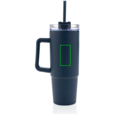Introducing the Tana double wall plastic tumbler, a 900ml tumbler made from 80% recycled material for low impact hydration. Whether you're working, exercising, or travelling, this tumbler is your ideal companion. The advanced lid features a rotating cap with three positions: a spill-resistant straw opening, a sipping spout, and a fully sealed lid. The ergonomic handle with comfort-grip inserts ensures easy carrying and the slim base fits most car cup holders. Hand wash only. Total recycled content: 80% based on total item weight. BPA free. Capacity 900ml. Including FSC®-certified kraft gift packaging.