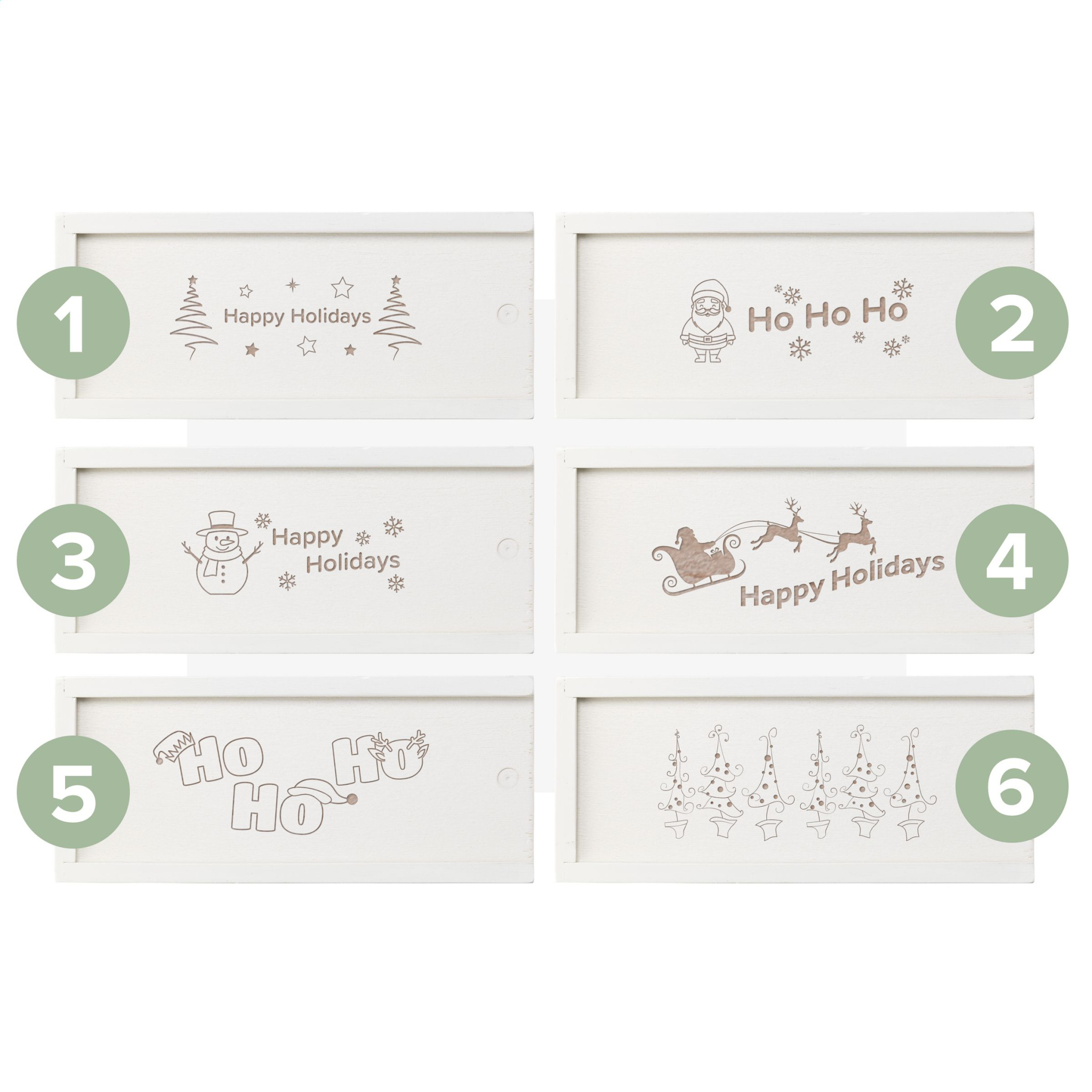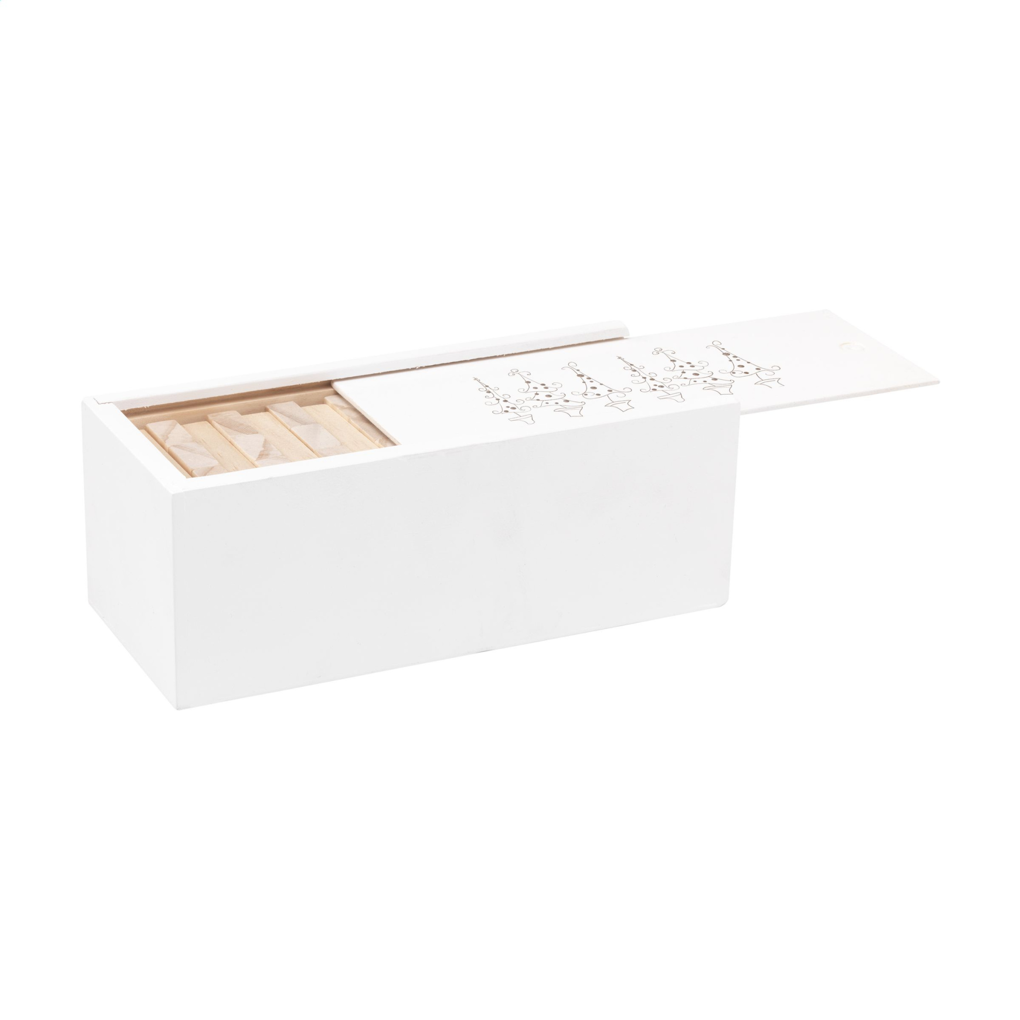 Wooden stacking game (48 blocks) with a standard Christmas design. Tower dimensions 16.5 x 6 x 6 cm. Presented with a white, wooden box with sliding opening for easy storage. Incl. instructions. - This product is printed with a standard Christmas design. Choice of 6 different designs as shown in the images. It is not possible to customize a design. Each item is supplied in an individual brown cardboard box.