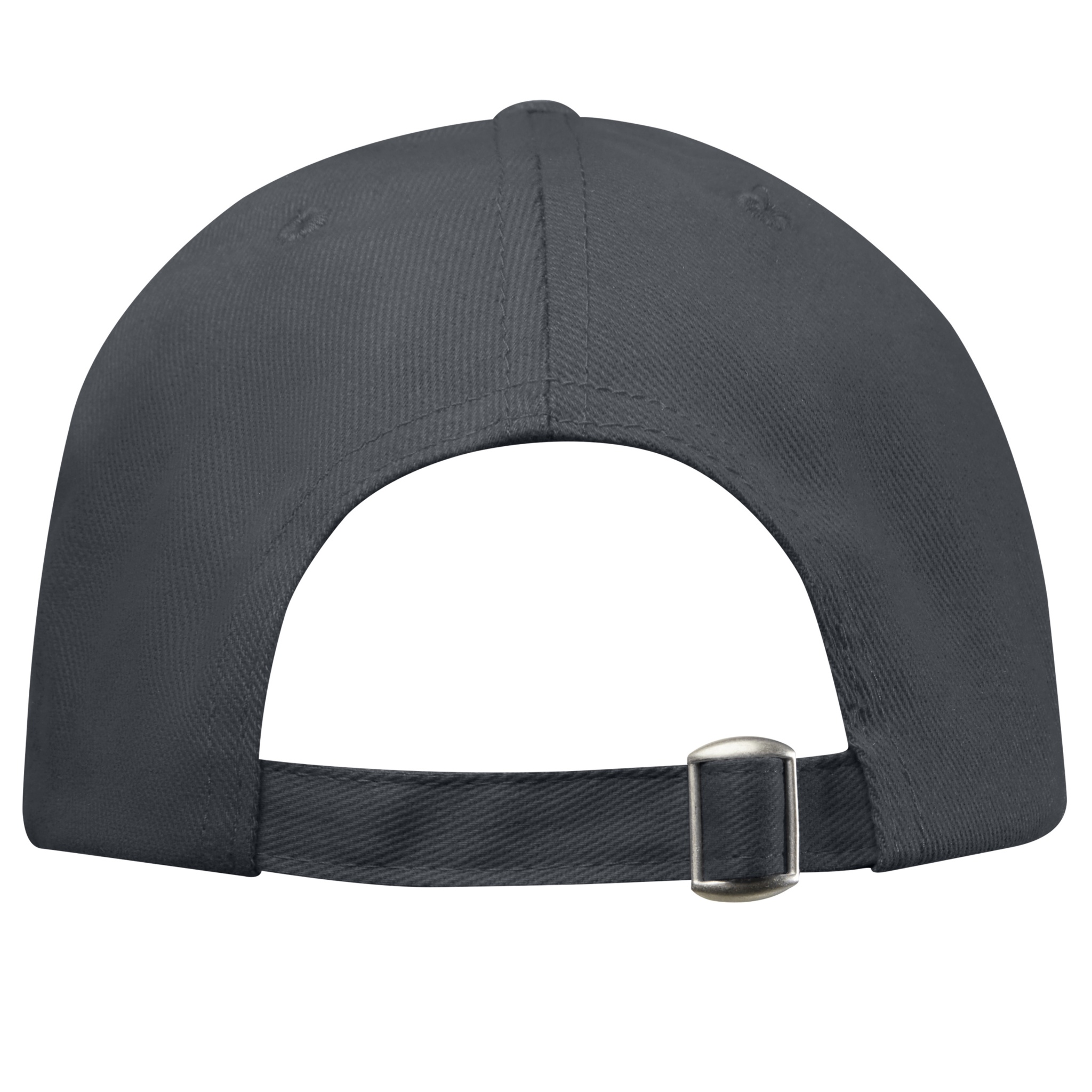 Sustainable promotional headwear. Pre-curved visor. Embroidered eyelets for ventilation. Tri-glide metal buckle closure. Head circumference: 58 cm.