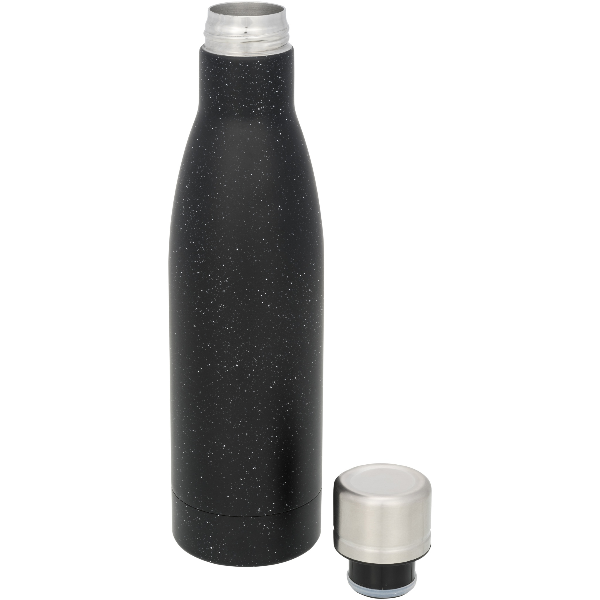 Keep your drinks hot for 12 hours or cold for 48 hours with the Vasa speckled copper vacuum insulated bottle. Double walled and made from stainless steel with vacuum insulation and a copper plated inner wall, which means that your beverage is kept piping hot or ice cold depending on your requirements. The bottle features an on-trend, speckled finish. BPA Free and tested and approved under German Food Safe Legislation (LFGB), and for Phthalates Content under REACH. Volume capacity: 500 ml. Delivered in a gift box.
