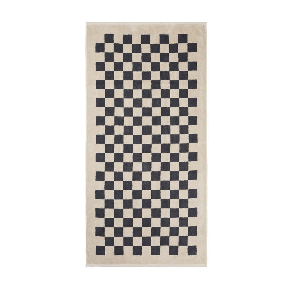 Experience the perfect blend of style, comfort, and absorbency with these exquisite towels. This set offers exceptional softness and functionality. With a plush 500 gsm weight, these towels offer good absorbency and softness. The modern checkerboard pattern adds sophistication to your bathroom decor. The set includes two towels measuring (135x165cm) and two smaller, practical towels measuring (65x40cm). Each set is thoughtfully packaged in FSC®-certified kraft packaging. The Organic Content Standard (OCS) verifies organically grown material and tracks it from source to final product. This product contains 99% OCS certified organic cotton.