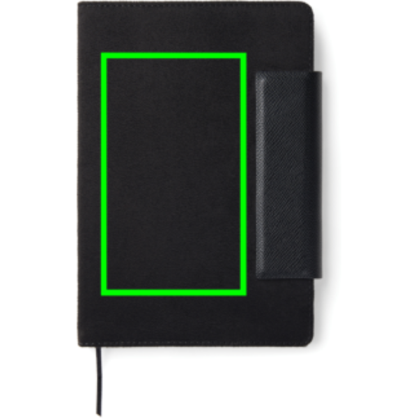 A stylish A5 notebook consisting of 160 lined pages (80 sheets). It is the perfect accessory to bring to meetings, keeping your notes organised in style. Marlow notebook combines timeless design with recycled faux leather, PU details and recycled paper. The notebook is equipped with a practical and stylish magnetic closure. Certified by GRS (Global Recycled Standard), GRS certification guarantees that the entire supply chain of the recycled materials is certified. The total recycled content is based on the overall product weight. This product contains 50% GRS certified recycled paper and 6% GRS certified recycled polyester.