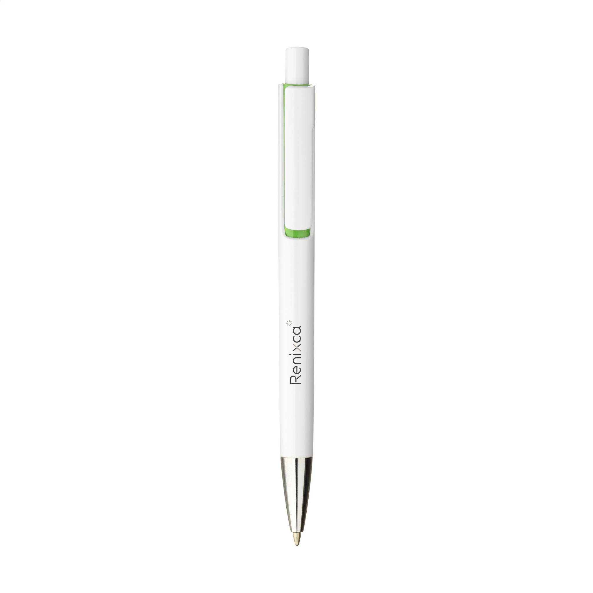 WoW! Blue ink ballpoint pen made from recycled ABS. With a unique design: the barrel and clip of this pen is designed in one piece. With colourful accent under the optical 'floating' clip. GRS-certified. Total recycled material: 75%.