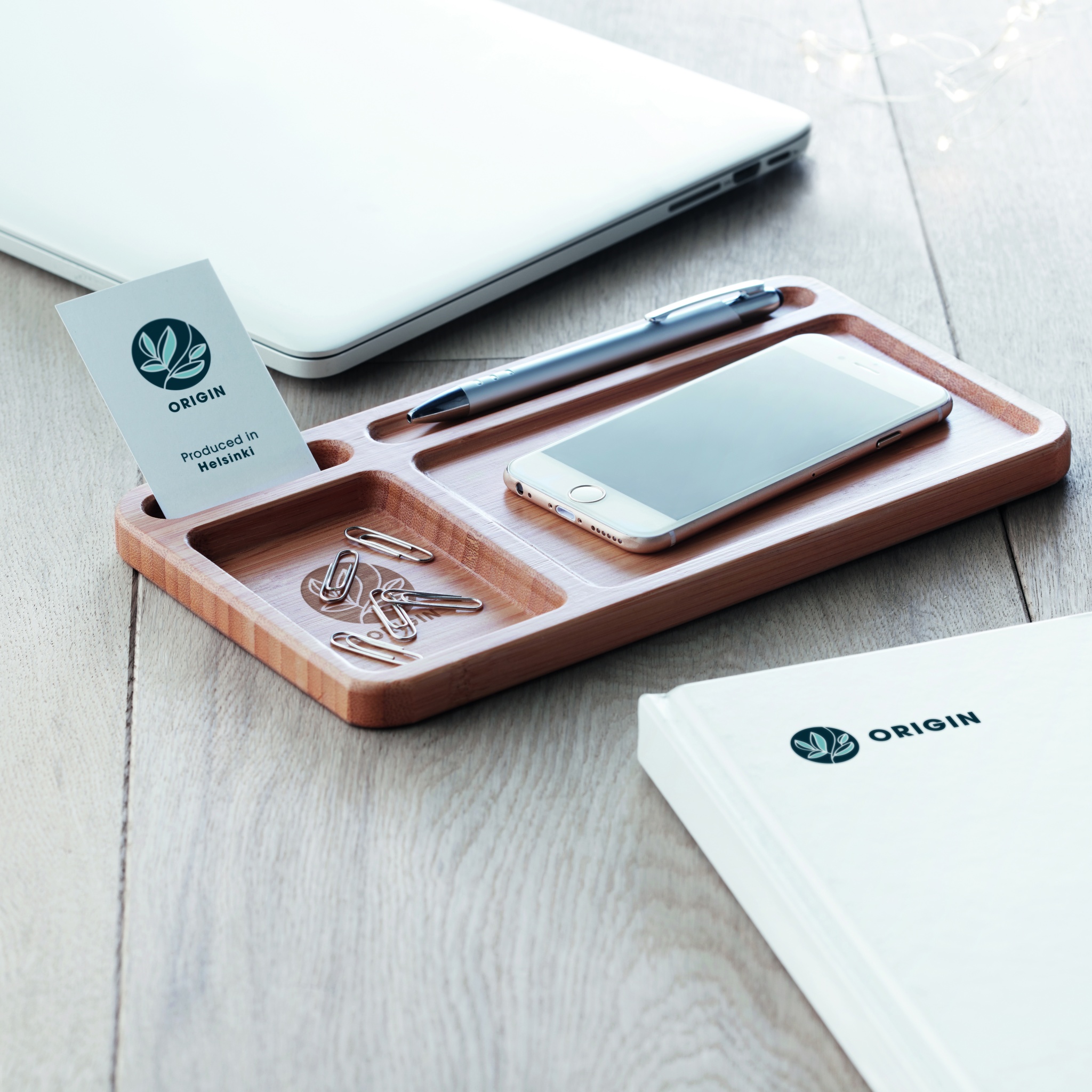Desk storage desk box in bamboo with wireless charger. Including 80 cm USB cable charger. Output DC5V/1A (5W). Compatible with all QI enabled devices such as the latest androids, iPhone® 8, 8S and X and newer. Bamboo is a natural product, there may be slight variations in colour and size per item, which can affect the final decoration outcome.