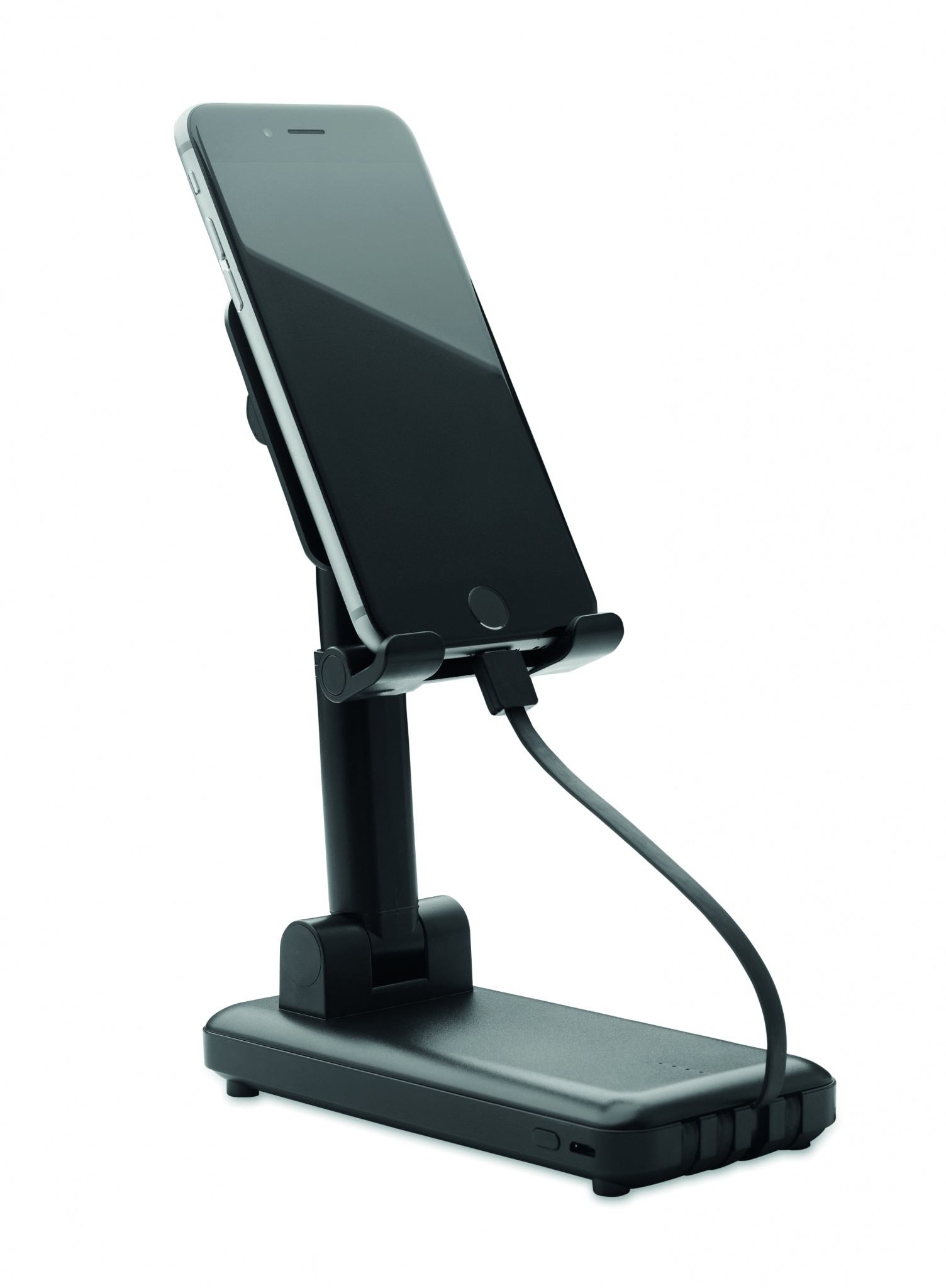 ABS-i akupank 10000 mAh koos pikendatava ja kokkupandava telefonihoidikuga. Integreeritud multikaablid. Väljund: DC 5V/2A.