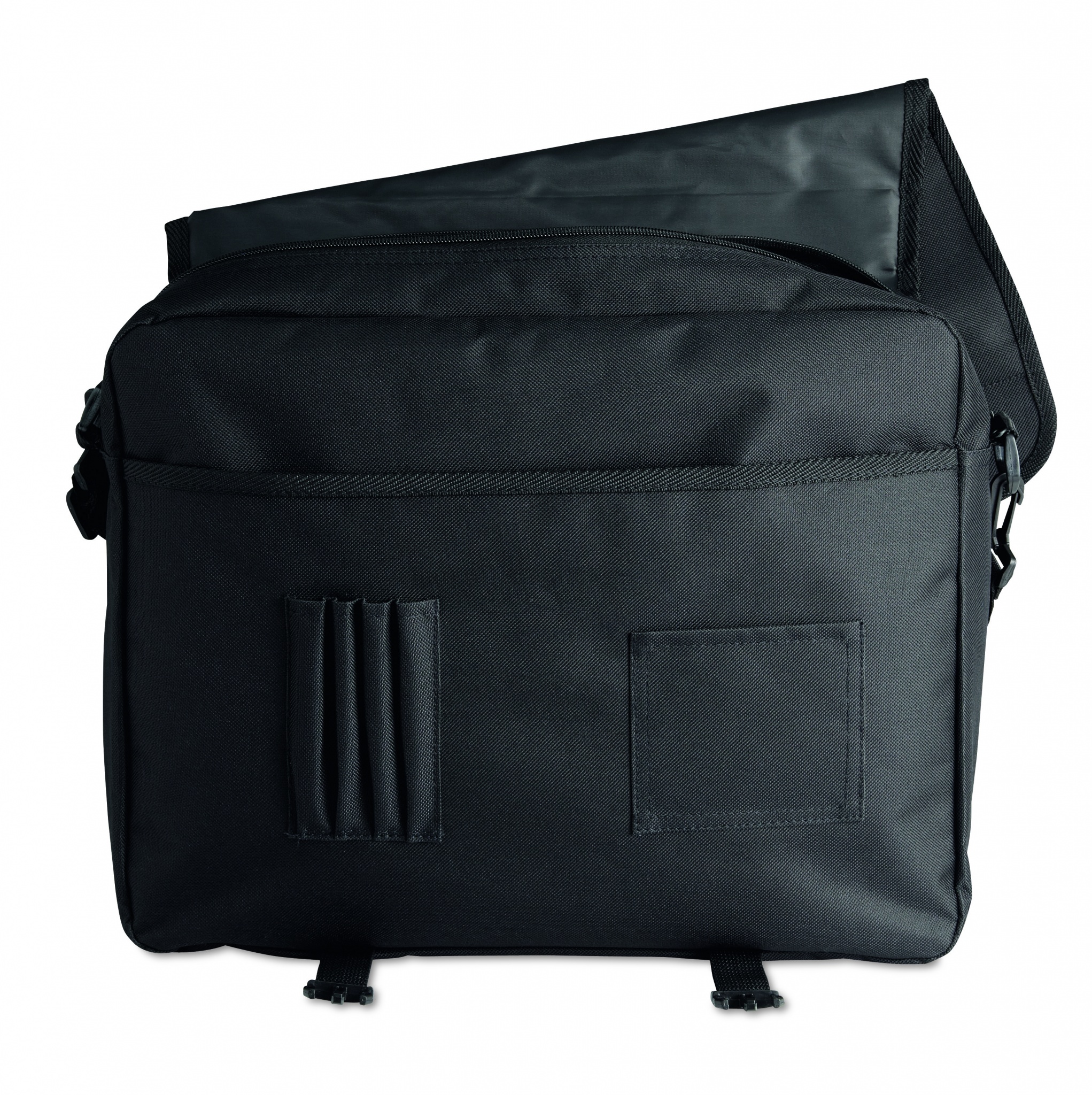 Dokumendiklapiga kott 600D polüestrist lukuga põhisahtli ja mitme reguleeritava ja eemaldatava õlarihmaga taskuga.