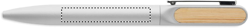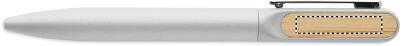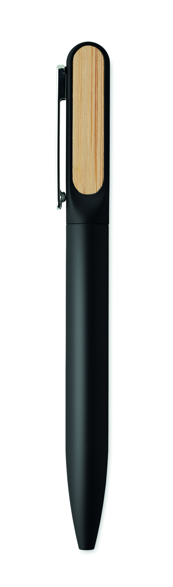 Keeratava funktsiooniga pastapliiats taaskasutatud alumiiniumist korpuse, taaskasutatud ABS-plastist keerme osaga ja bambusdetailidega metallklambriga. Sinise tindiga.