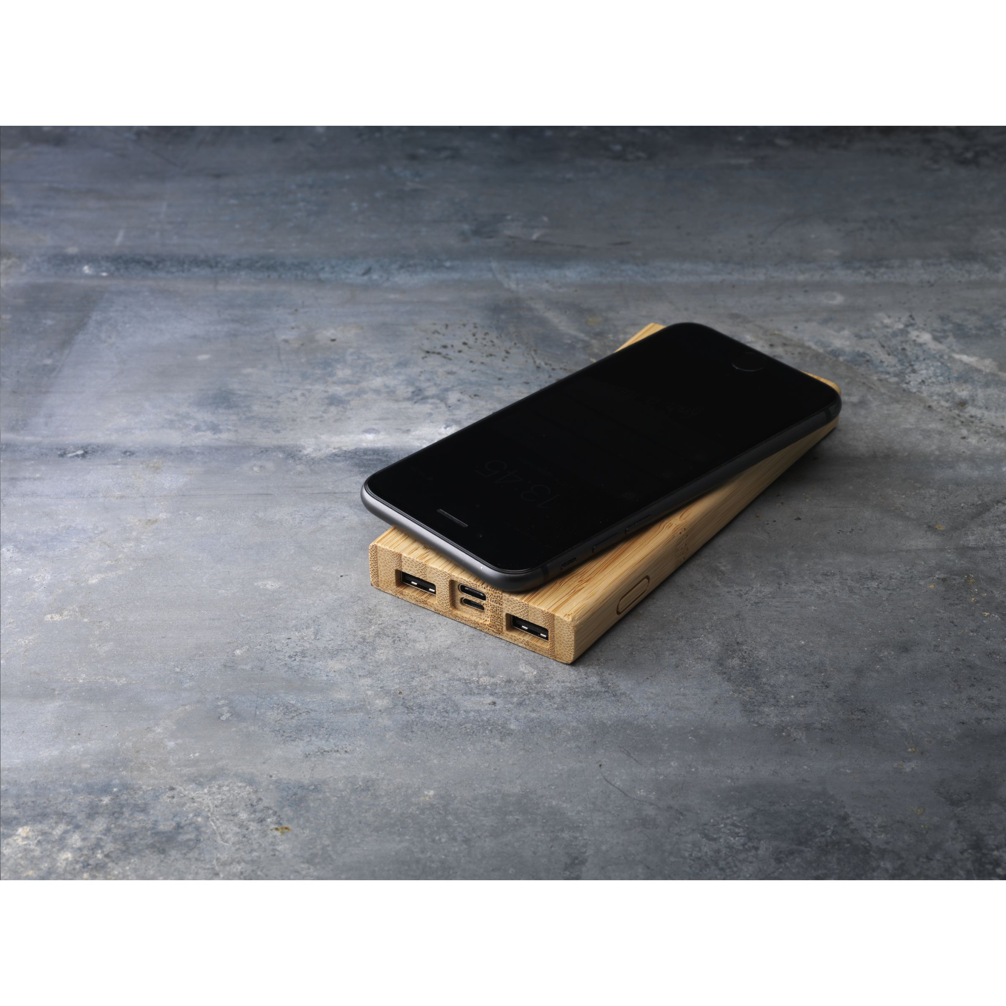 Looduslikust bambusest võimas juhtmevaba laadimise akupank koos sisseehitatud liitiumpolümeerakuga (8000mAh). Laadib USB-pordi kaudu kiiresti nutitelefone või tahvelarvuteid ja sisaldab integreeritud 5 W juhtmevaba laadimisfunktsiooni mobiilseadmetele, mis toetavad QI juhtmevaba laadimist (uusimad põlvkonnad Android ja iPhone). Sisend 5V/2A (tüüp-C ja mikro-USB). Väljund: 5V/2A. Juhtmeta väljund: 5V/1A (5W). Indikaatortulede ja sisse/välja nupuga. Kaasas USB-C ühendusega laadimiskaabel, USB-C pistik ja kasutusjuhend. Iga ese on eraldi karbis.