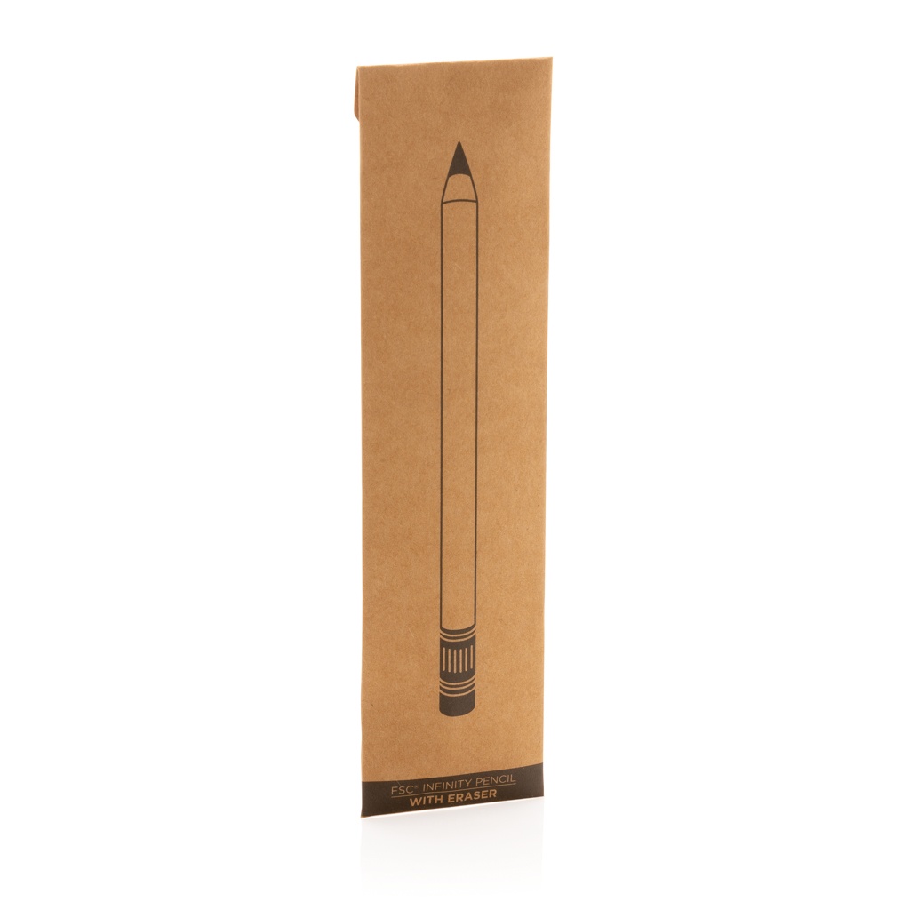 See kustutuskummiga lõpmatuse pliiats asendab teie traditsioonilist puidust pliiatsit. Traditsioonilised puidust pliiatsid kirjutavad ainult kuni umbes 200 meetrit, kuid selle FSC® bambusest lõpmatuse pliiatsi pikkus on kuni umbes 20 000 meetrit, kasutades grafiidist joont. See mitte ainult ei kirjuta nagu pliiats, vaid ka märgiseid saab kustutada. See toimib nii, et jätab paberile grafiitjoone nagu tavaline traditsiooniline puidust pliiats, kuid kulub nii aeglaselt, et peaks vastu kuni 100 traditsioonilist puidust pliiatsit!