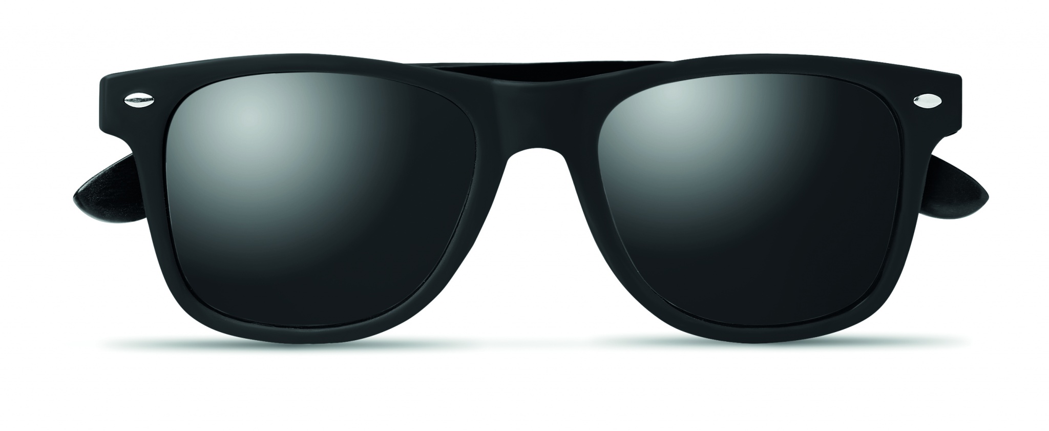Päikeseprillid musta kattega bambusest õlavarre ja peegelklaasiga. UV400 kaitse. Bambus on looduslik toode, ühe eseme värvis ja suuruses võib esineda väikesi erinevusi, mis võivad mõjutada lõppviimistlust.
