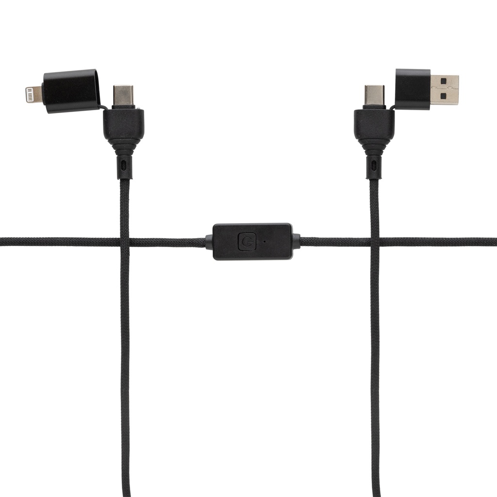 60 W laadimis- ja andmekaabel, mis suudab laadida kõiki teie mobiilseadmeid tippkiirusel ja toetab isegi sülearvuti laadimist. Kaablil on ainulaadne integreeritud nupp andmeedastusfunktsiooni väljalülitamiseks, kui kasutate kaablit avalikus kohas, et vältida andmevargust või häkkerite juurdepääsu teie telefonile. Kaitserežiimi aktiveerimiseks vajutage lihtsalt nuppu. Kaabel on valmistatud taaskasutatud TPE-st, PET-st, ABS-ist ja taaskasutatud alumiiniumist. 120 CM pikkune ja toetab funktsiooni Car Play ja Android auto (ainult tüüp C kuni C tüüpi). Taaskasutatud kogusisaldus: 52% eseme kogukaalust. RCS-sertifikaat tagab taaskasutatud materjalide täielikult sertifitseeritud tarneahela. Pakitud FSC segupakendisse. PVC vaba.