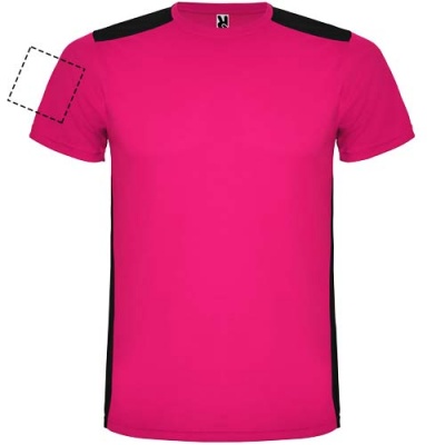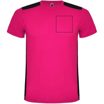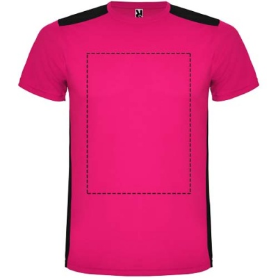 Kergesti kuivav, tehniline ja hingav kangas. Meeskonna kael. Kahe polüesterkanga kombinatsioon seljal ja õlgadel. Ees linnusilma kangas ja taga hingav 3D võrkkangas. Niiskuse imamiseks ettevalmistatud kangas. Dekoratiivne siksakiline seljapiste külgedel ja õlgadel. Seljamuster veidi pikem. Eemaldatav etikett.