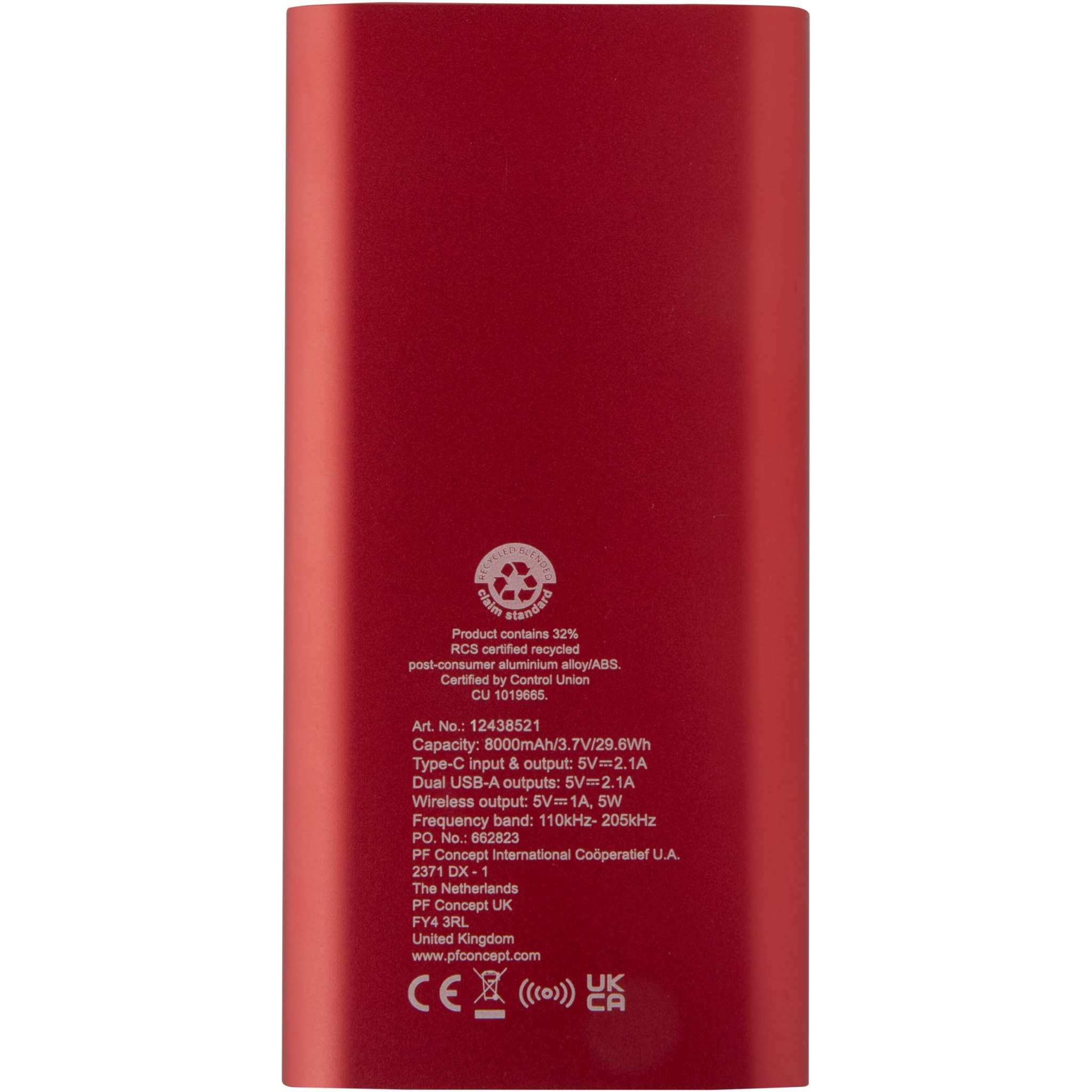 Juice 8000 mAh Type-C taaskasutatud alumiiniumist juhtmevaba toitepank, Punane