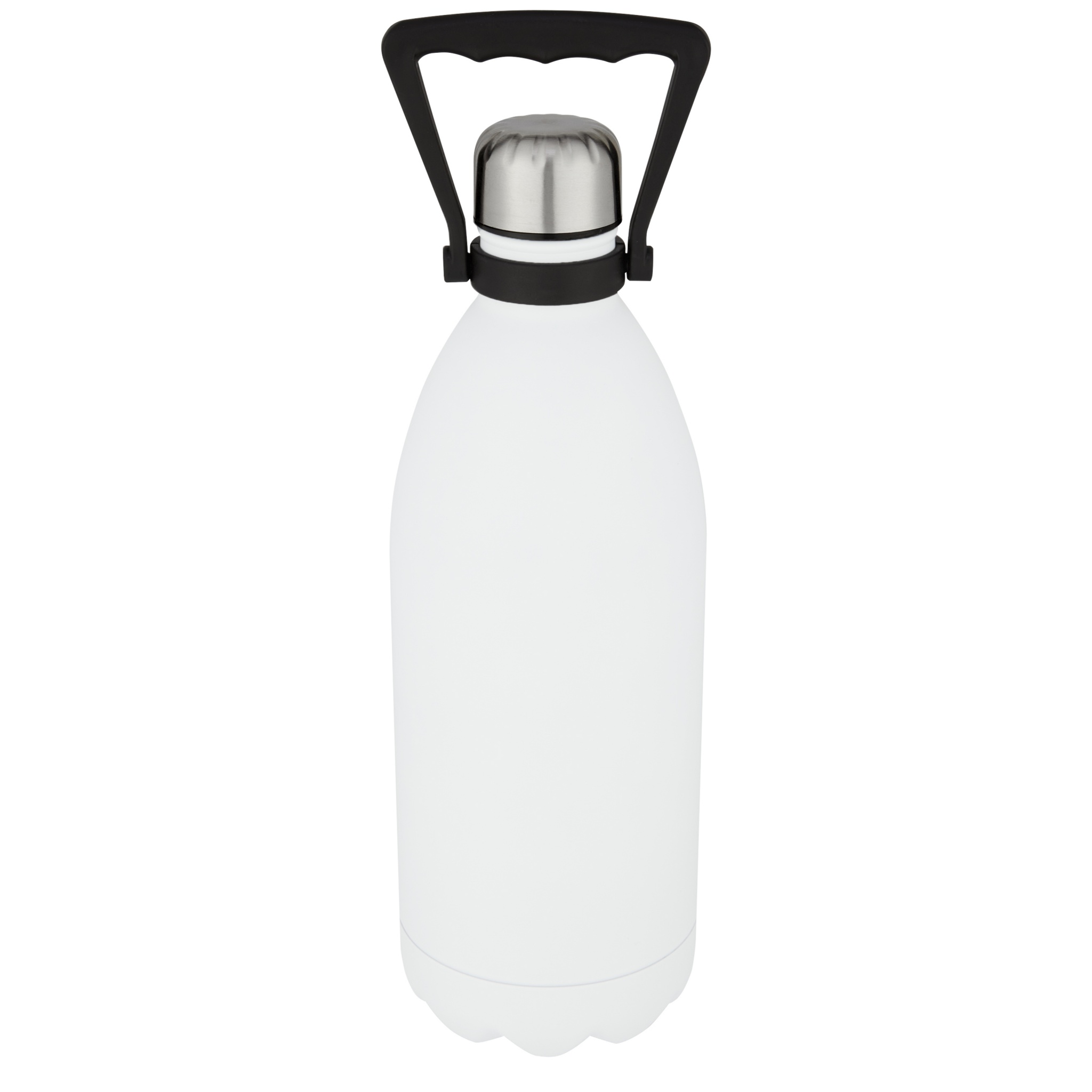 Eriti suur vaakumisolatsiooniga roostevabast terasest pudel, millel on ikooniline disain ja mugav käepide, mis hõlbustab kaasaskandmist. Isoleeritud 18/8 roostevaba teras hoiab joogid kuumana või külmana mitu tundi. BPA-vaba, testitud ja heaks kiidetud vastavalt Saksamaa toiduohutuse seadusandlusele (LFGB). Testitud ja heaks kiidetud ftalaatide sisalduse osas vastavalt REACH-määrustele. Maht on 1,5 liitrit. Soovitatav käsipesu. Esitatakse taaskasutatud papist kinkekarbis.