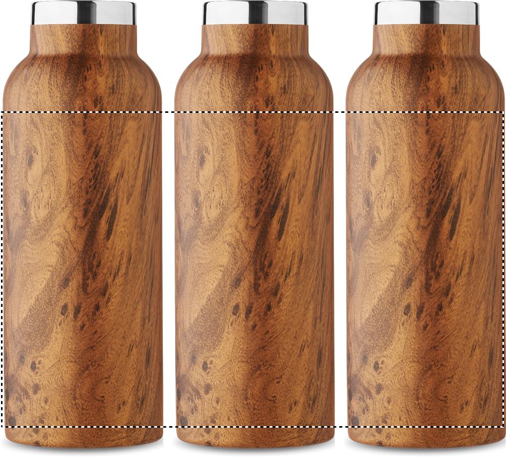 Kahekordse seinaga isoleeriv vaakumpudel taaskasutatud roostevabast terasest (90% taaskasutatud roostevabast terasest ja 10% roostevabast terasest), puidust välimuse ja kandesanga kaanega. Lekkevaba. Mahutavus: 500 ml.