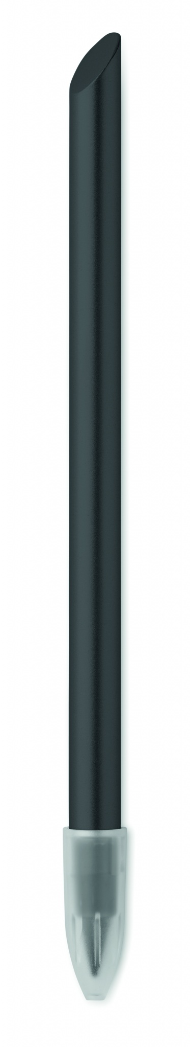Kauakestev taaskasutatud alumiiniumist tindita pliiats. Pliiats kirjutab grafiitotsaga, millel on plastikust kaitsekate.