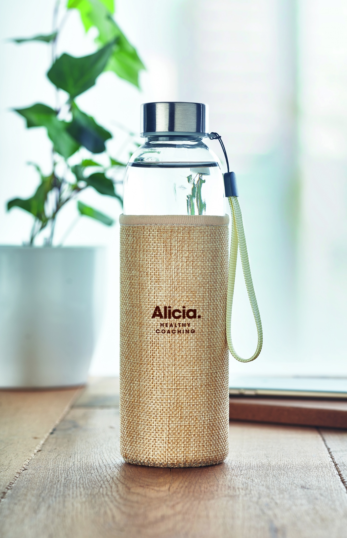 Klaasist joogipudel neopreenist stiilis ja džuudist segatud materjalist kotiga. Mahutavus: 500 ml. Ei sobi gaseeritud jookidele. Lekkevaba.