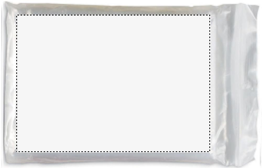 Kokkupandav plastikust pontšo kinnitatud kapuutsiga, pakitud läbipaistvasse polükotti.
