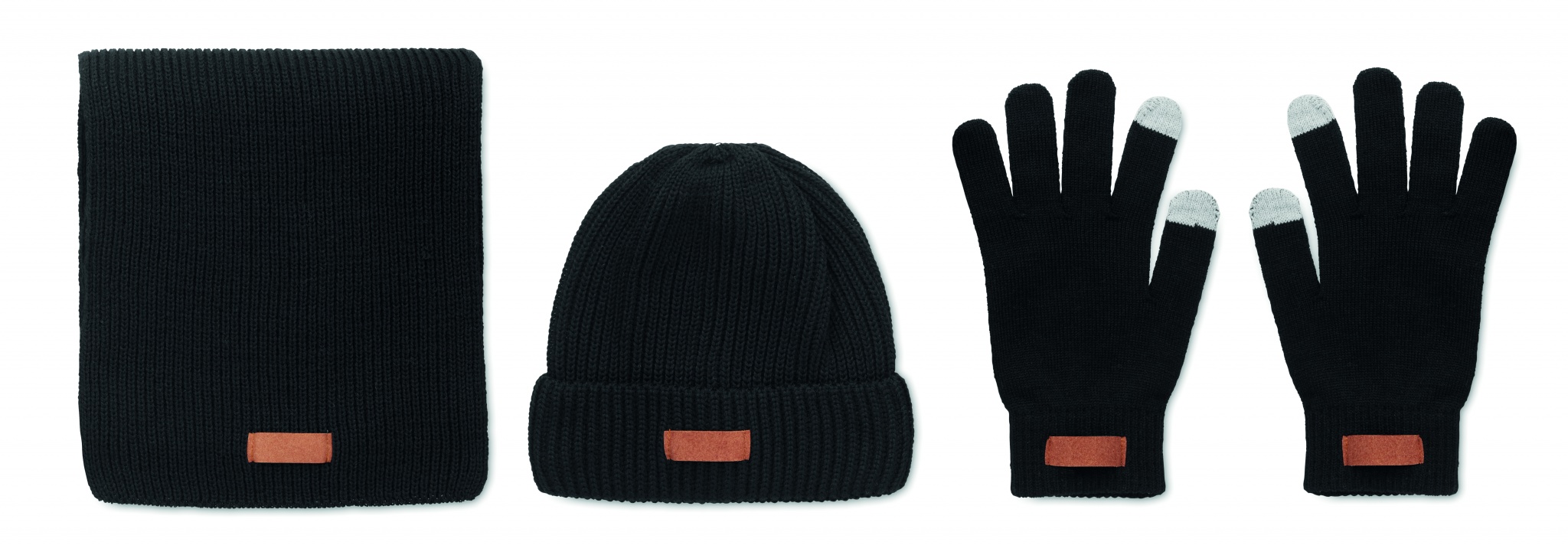 Logo trade firmakingituse pilt: Talvekomplekt taaskasutatud materjalist, kindad, müts ja sall
