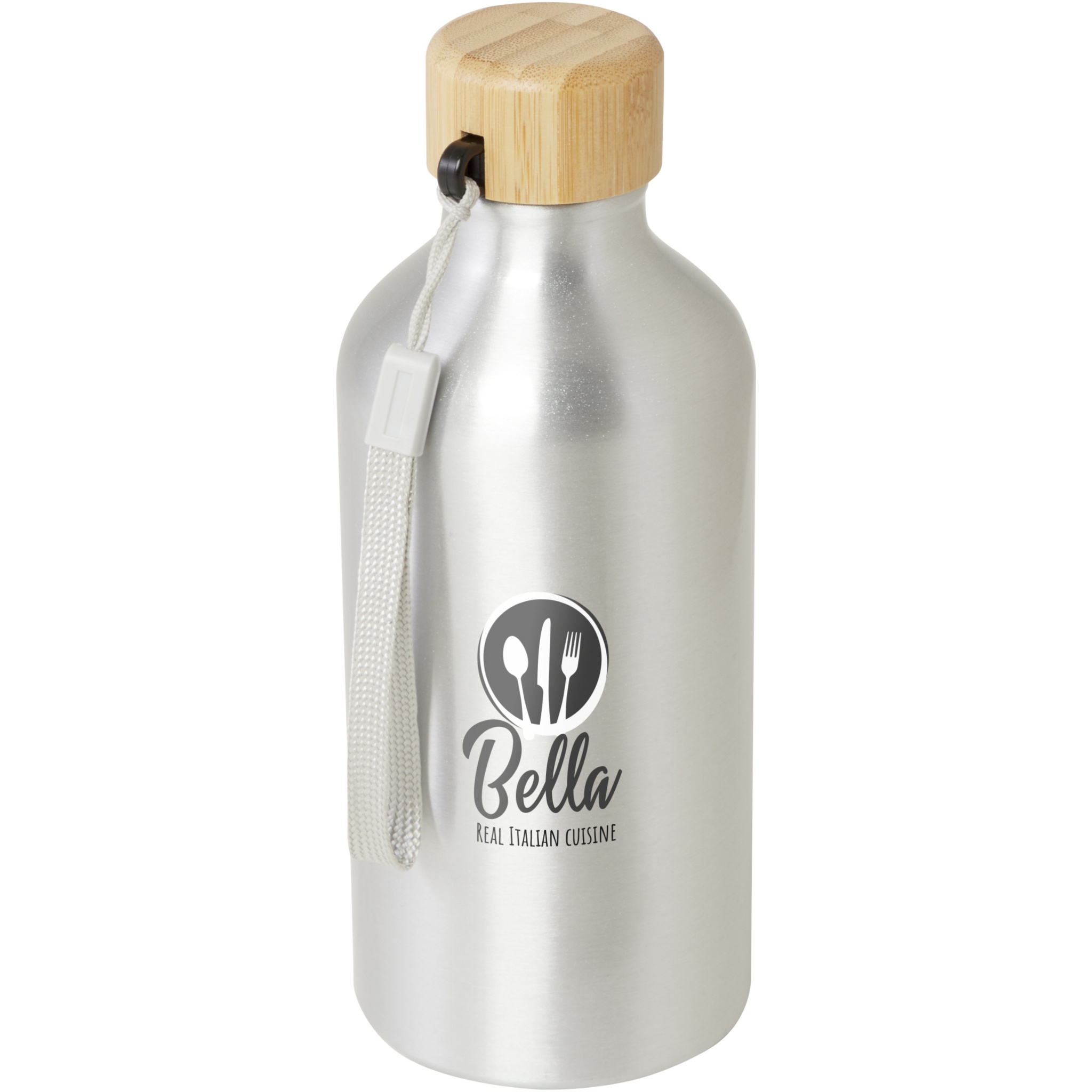 RCS sertifikaadiga taaskasutatud alumiiniumist veepudel stiilse bambuskaanega. Sellel kergel ühe seinaga pudelil on kaasas kandmise hõlbustamiseks rihm. Bambus on pärit jätkusuutlikest, keskkonna- ja sotsiaalselt vastutustundlikest allikatest. Mahutavus on 500 ml. Ainult käsipesu.