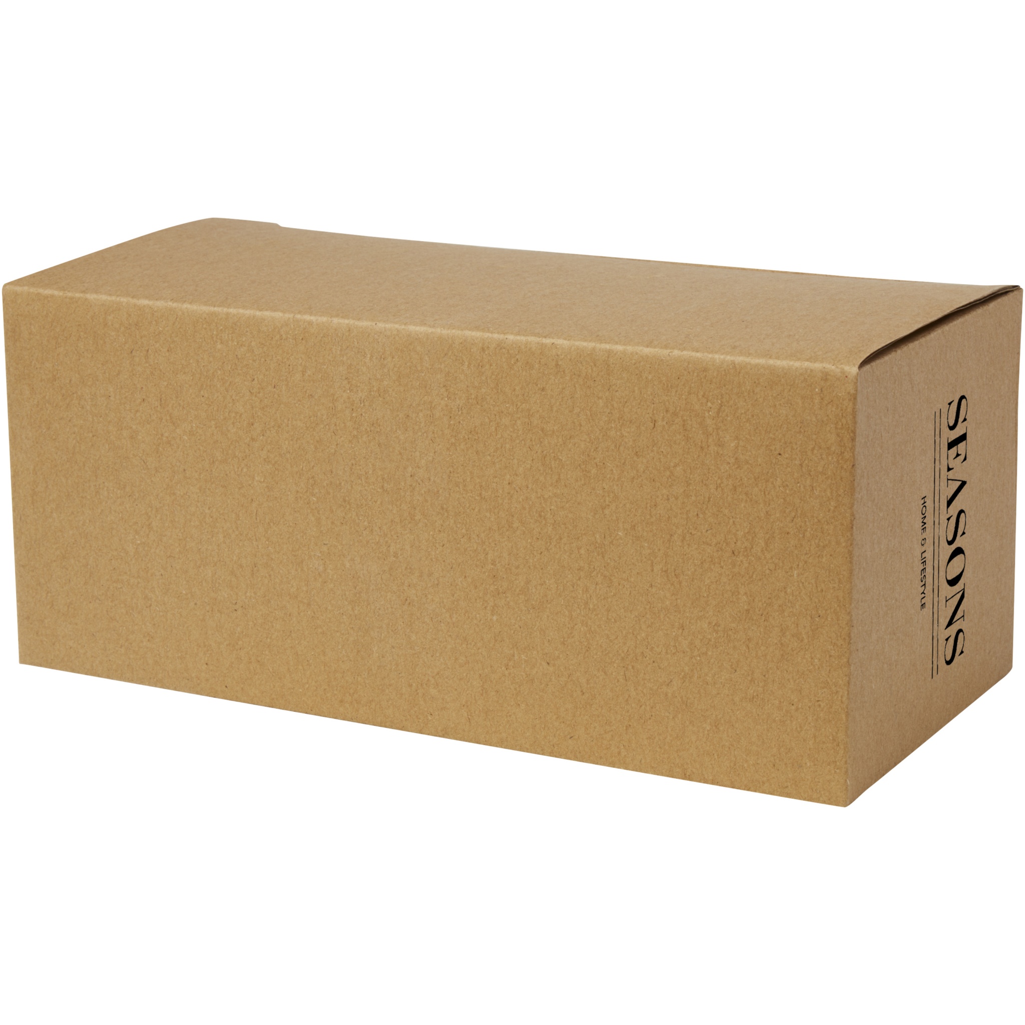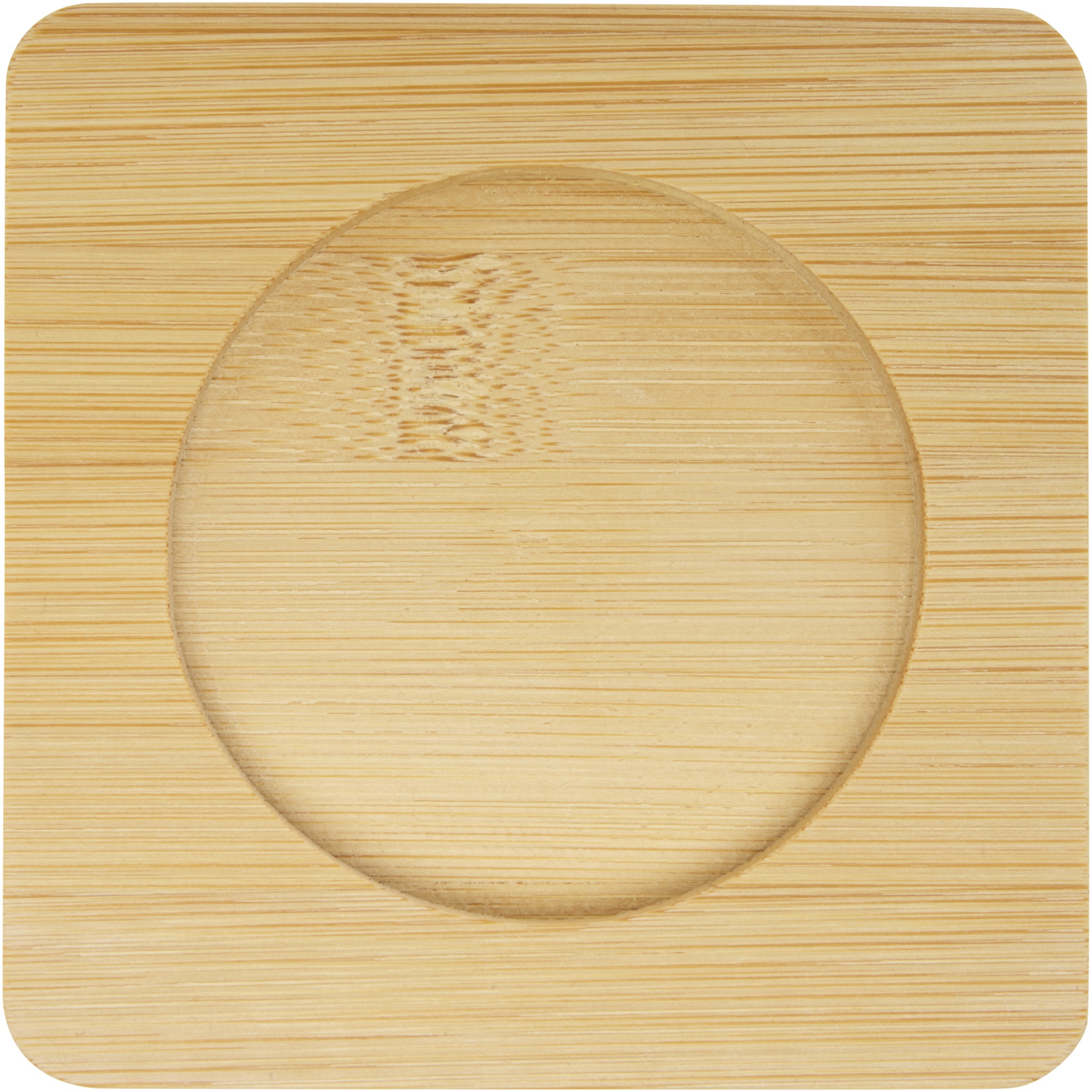 Kahest kahest seinast koosnev bambusalusega termoklaasi komplekt. Bambus pärineb jätkusuutlikest, keskkonna- ja sotsiaalselt vastutustundlikest allikatest. Tänu topeltborosilikaatklaasile säilib joogi temperatuur pikka aega. Maht on 250 ml. Alusaluse suurus: 10 x 10 x 1 cm.