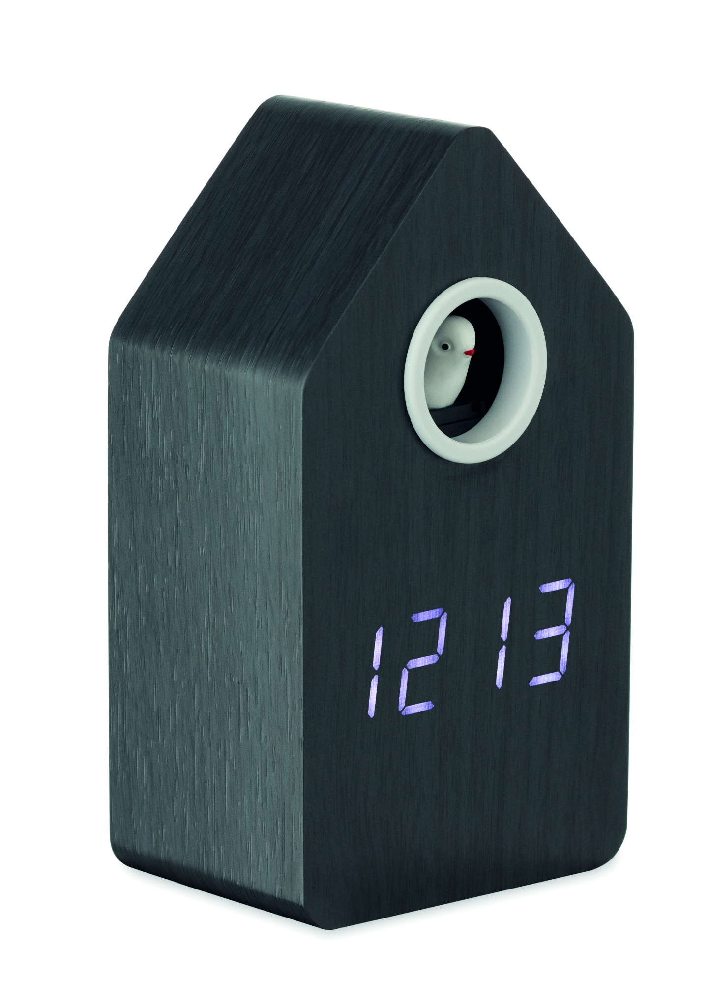Musta värvi MDF-ist käokell sisseehitatud äratuse/temperatuurinäidikuga. Lind tuleb välja iga täistunni ja äratuse ajal ning sellel on käolinnu hääl. Valge LED-ekraan. Heli vaigistatakse automaatselt kella 22.00 ja 06.00 vahel. 5-minutilised edasilükkamise intervallid.