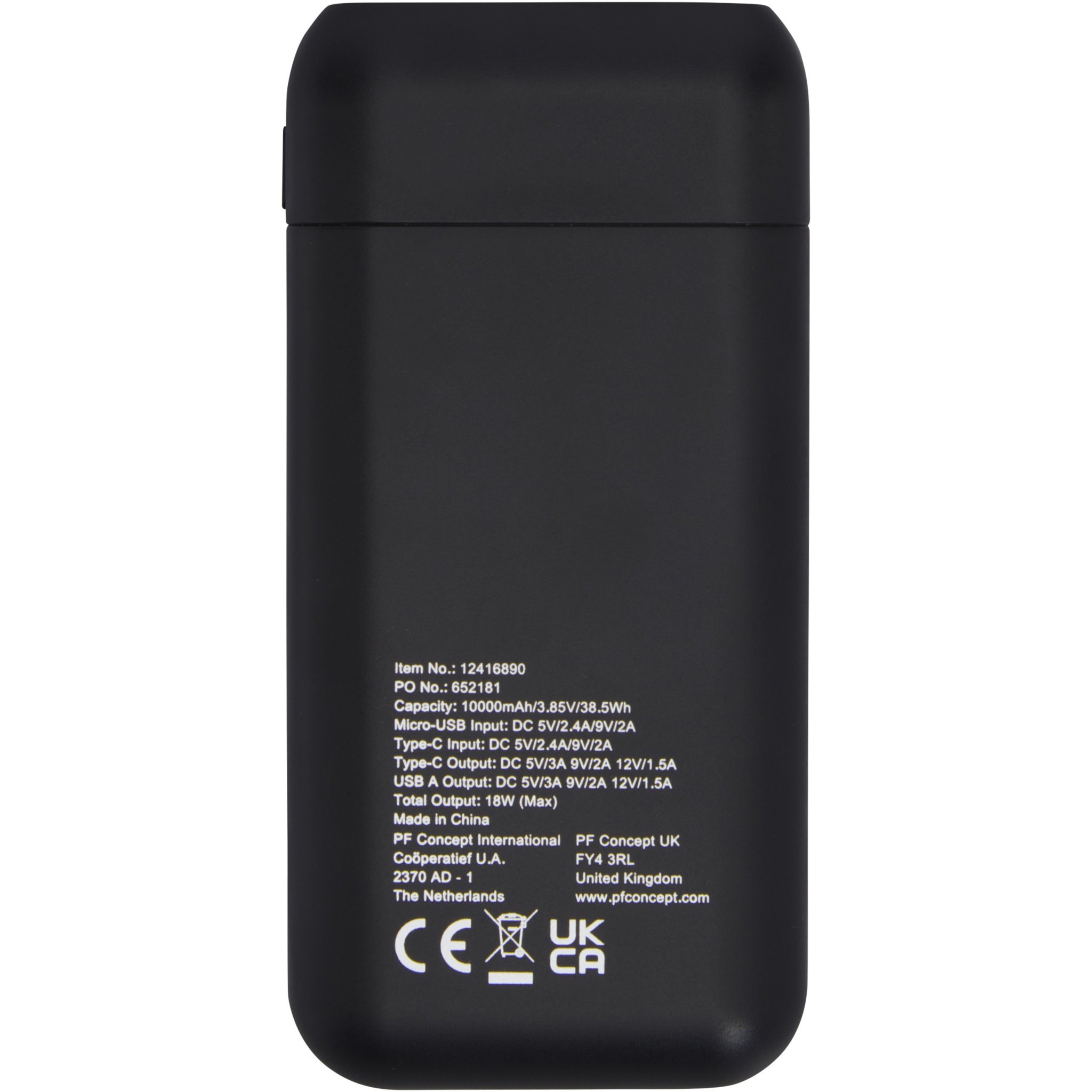 Kompaktne akupank 10 000 mAh suure tihedusega akuga, mis toetab kuni 18 W kiiret toiteallikat. Mikro-USB sisend: DC5V/2.4A, 9V/2A, C-tüüpi sisend: DC5V/2.4A, 9V/2A, C-tüüpi väljund: DC 5V/3A, 9V/2A, 12V/1.5A, USB-A väljund : DC 5V/3A, 9V/2A, 12V/1,5A, Koguväljund:18W (max). Kaasa arvatud PVC-vaba TPE plastist C-tüüpi PD laadimiskaabel. Pakitud Avenue kinkekarpi.