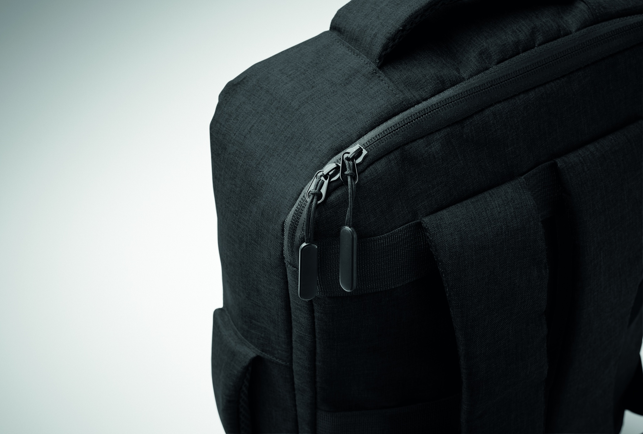 15-tollise sülearvuti seljakott, valmistatud 300D RPET-st ja 210D RPET-voodriga, Must